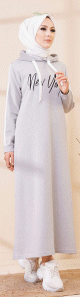 Robe évasée décontractée avec capuche style moderne et sport (Vetement moutahajiba) - Couleur gris clair - REF. 35507 (28.00 €)