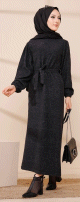 Robe tissu polaire avec ceinture (Vêtement Hijab Saison Automne-Hiver) - Couleur noir - REF. 35696 (26.90 €)