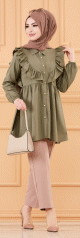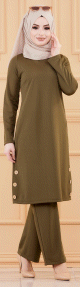 Ensemble tunique à boutons et pantalon assorti pour femme (Vetement mastour pour hijab) - Couleur kaki - REF. 36014 (36.90 €)