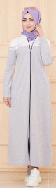 Robe longue à capuche fermeture zip (Boutique Mode Musulmane pour femmes voilées) - Couleur gris écru - REF. 37158 (29.90 €)