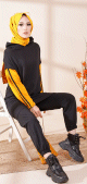 Tunique bicolore avec capuche pour femme (Tenue Hijab moderne et Sport) - Couleur noir et jaune moutarde - REF. 38287 (25.00 €) - En Promotion à 19.00 €