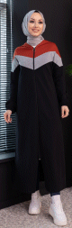 Robe longue à capuche fermeture zip pour femme (Vêtement Hijab style moderne) - Couleur noir et rose - REF. 37157 (29.90 €)