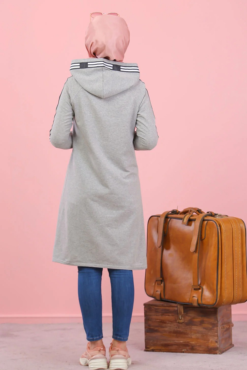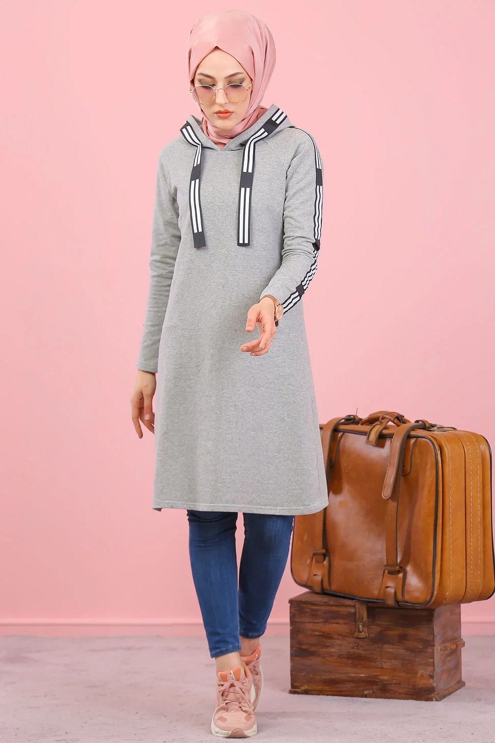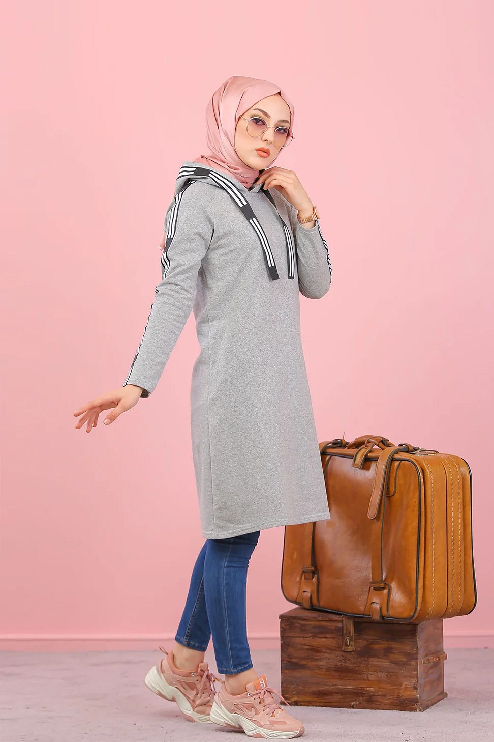 Sweatshirt long avec capuche style moderne décontracté et sport (Vetement voyage femme musulmane) - Couleur Gris Vetement & Accessoire
