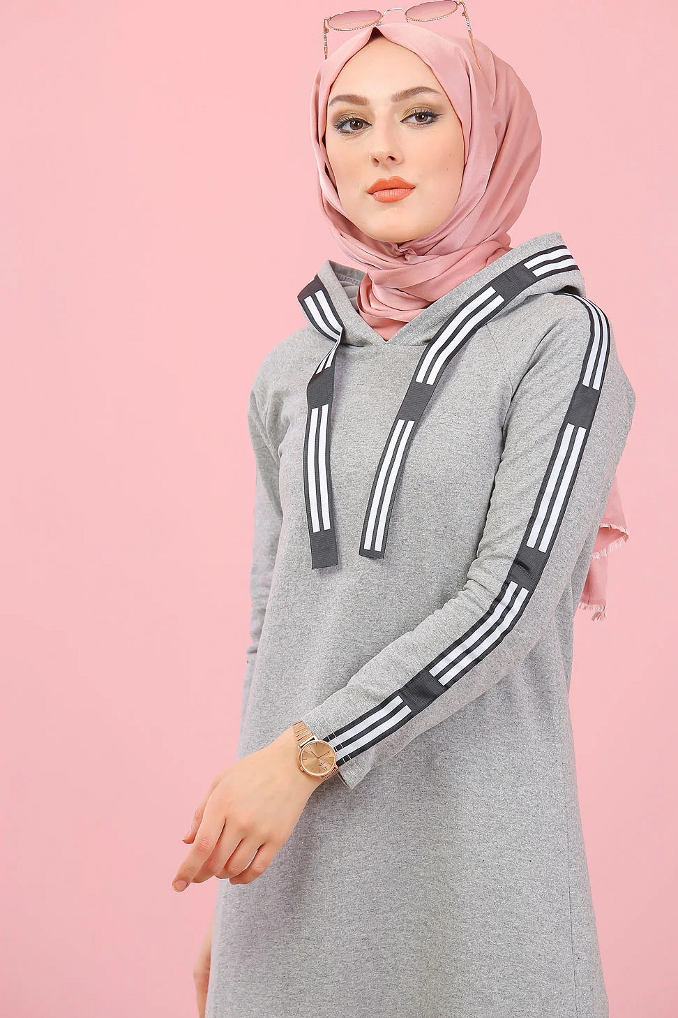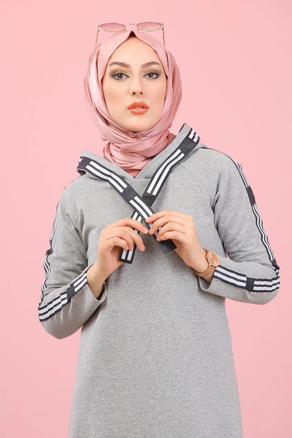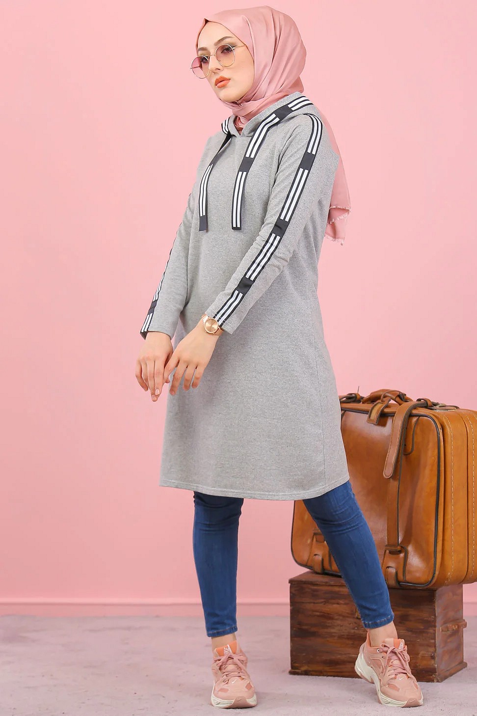 Sweatshirt long avec capuche style moderne décontracté et sport (Vetement voyage femme musulmane) - Couleur Gris Vetement & Accessoire