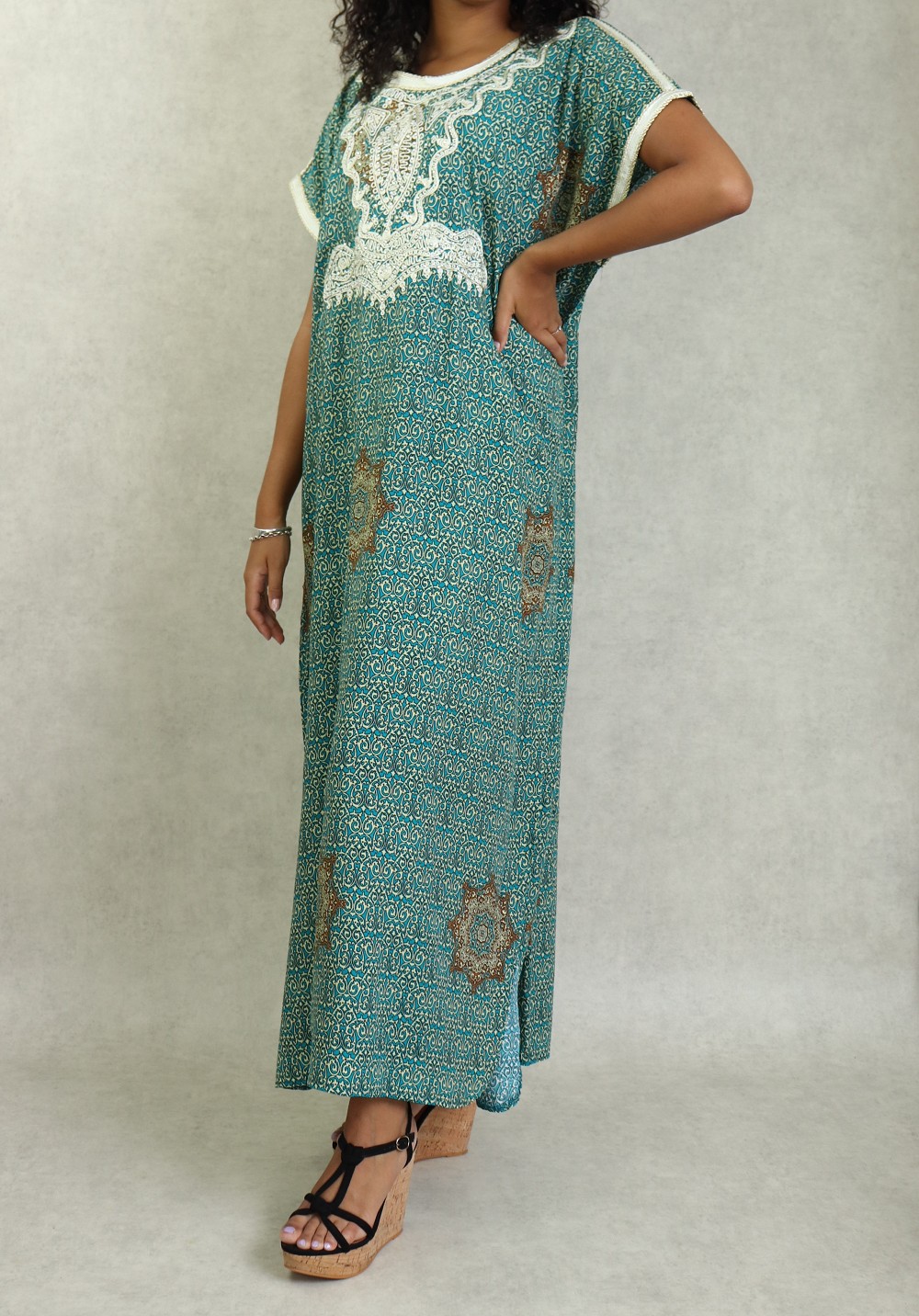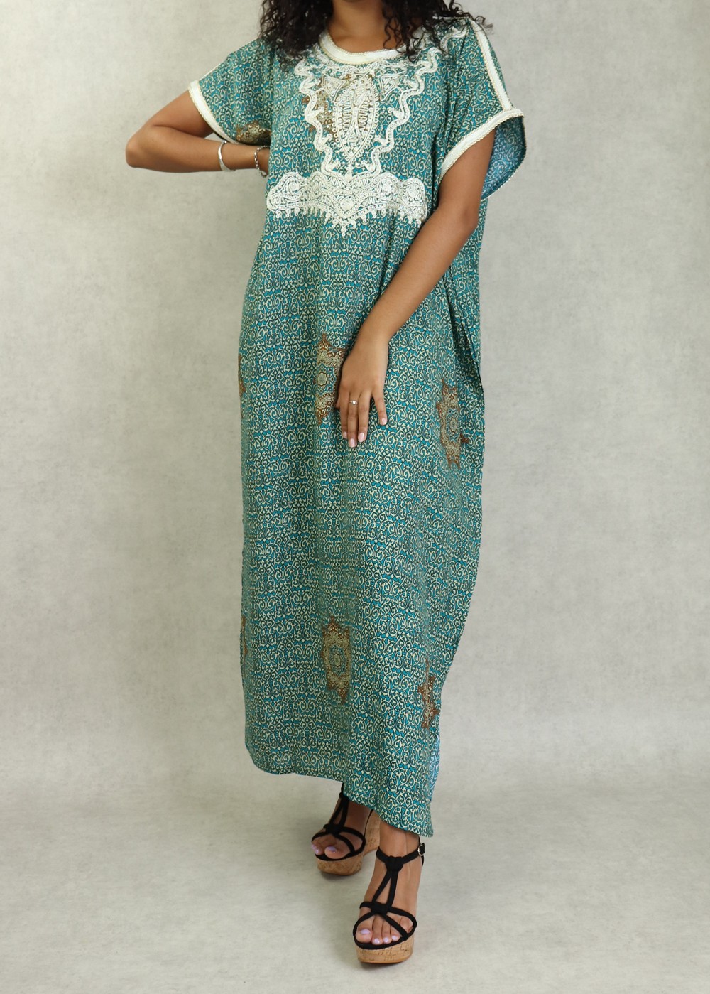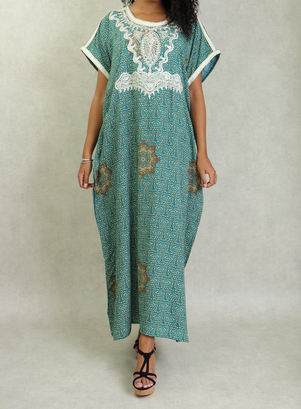 Robe orientale longue avec broderies et strass couleur vert-bleu - REF. 33030 (28.00 €)
