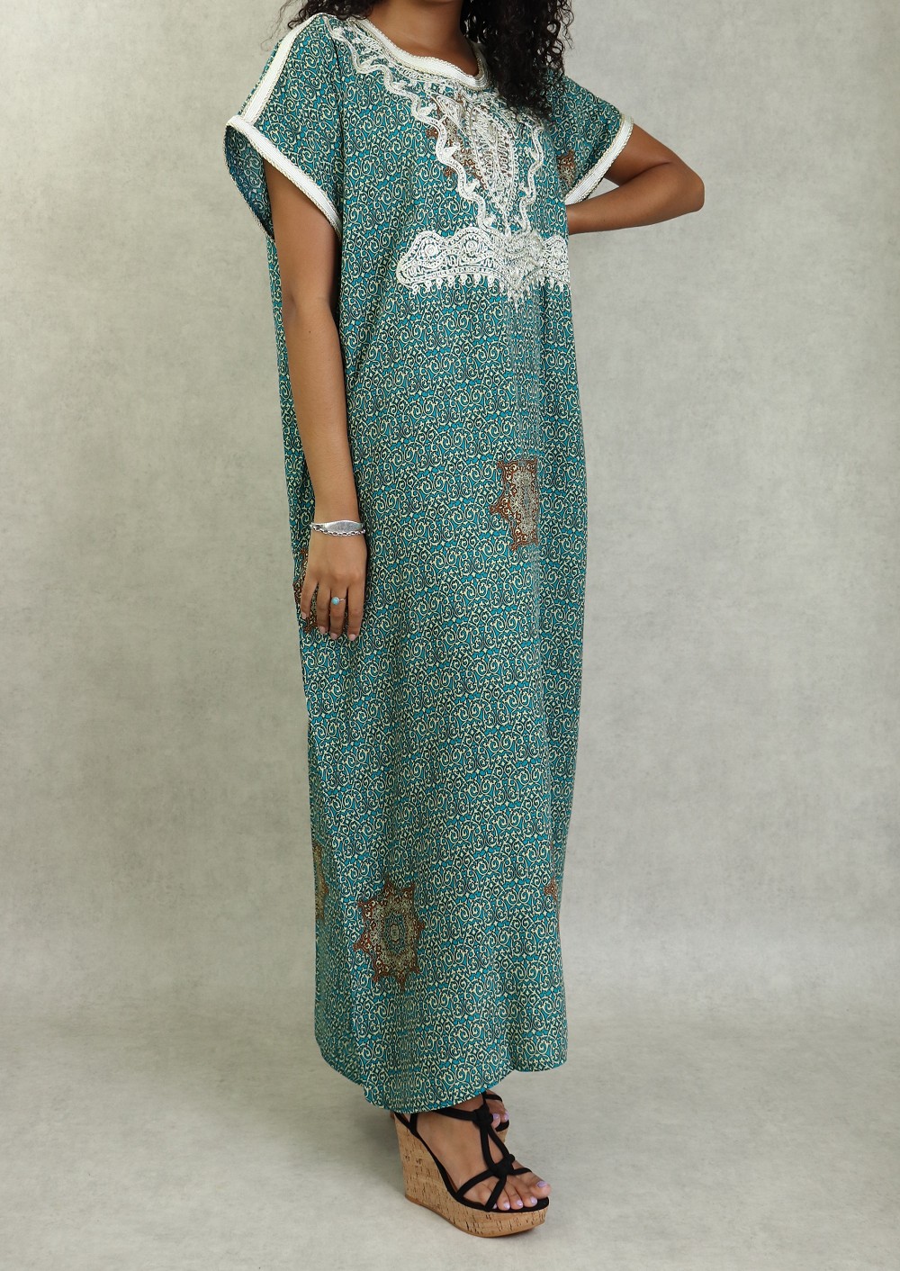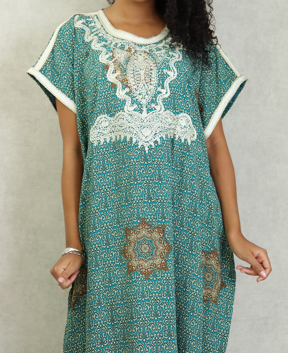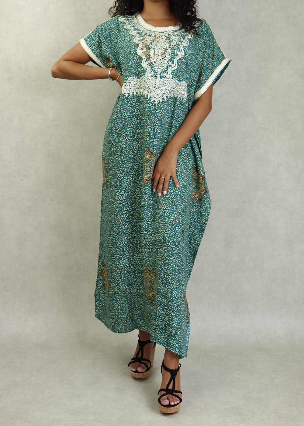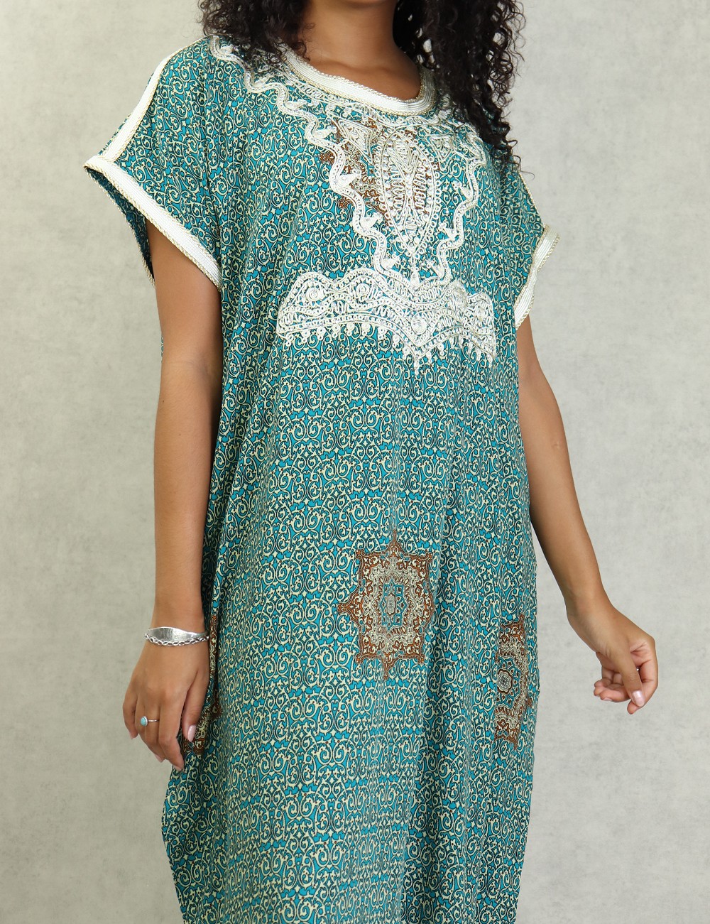 Robe orientale longue avec broderies et strass couleur vert-bleu - REF. 33030 (28.00 €)
