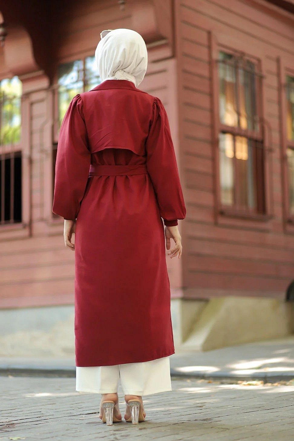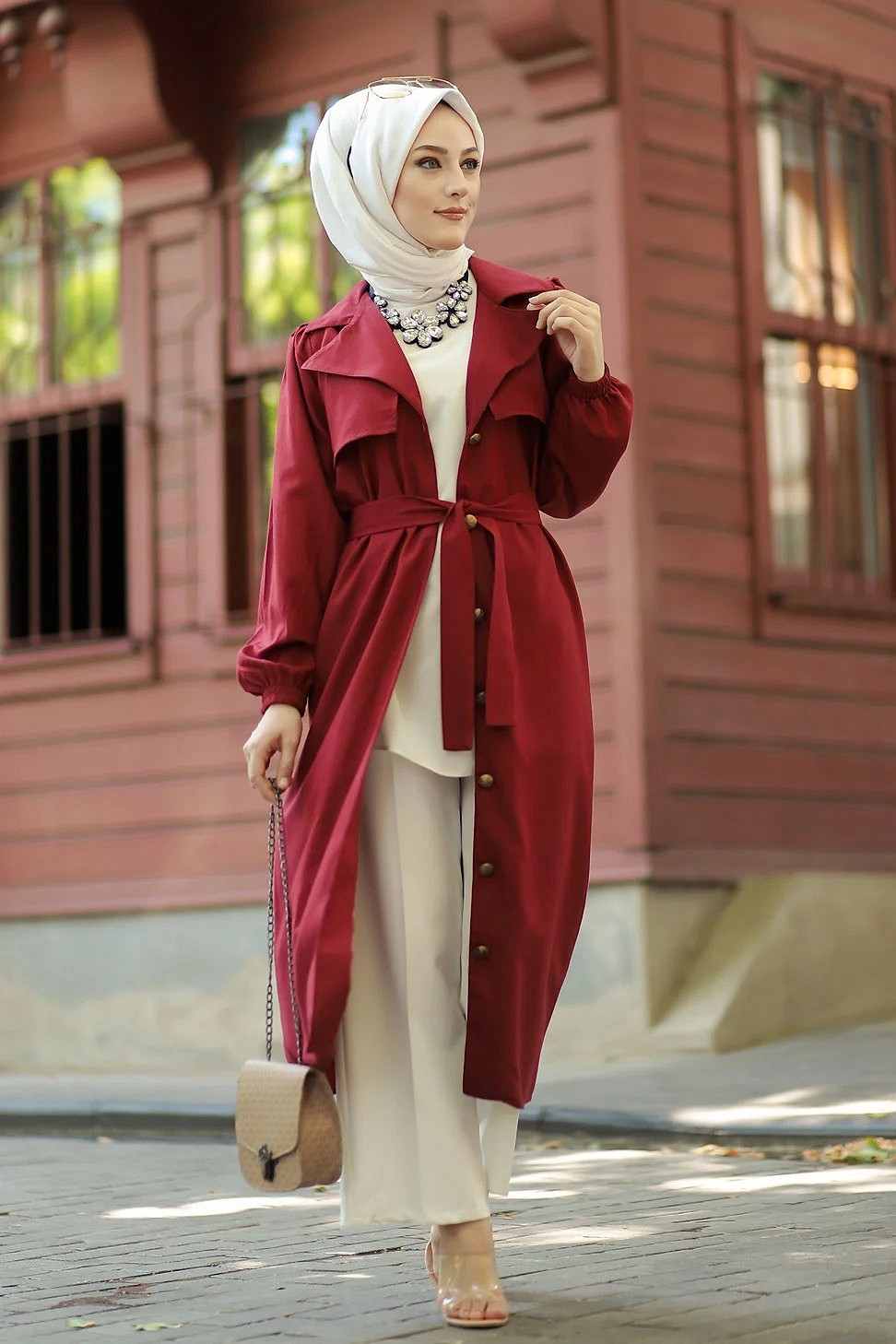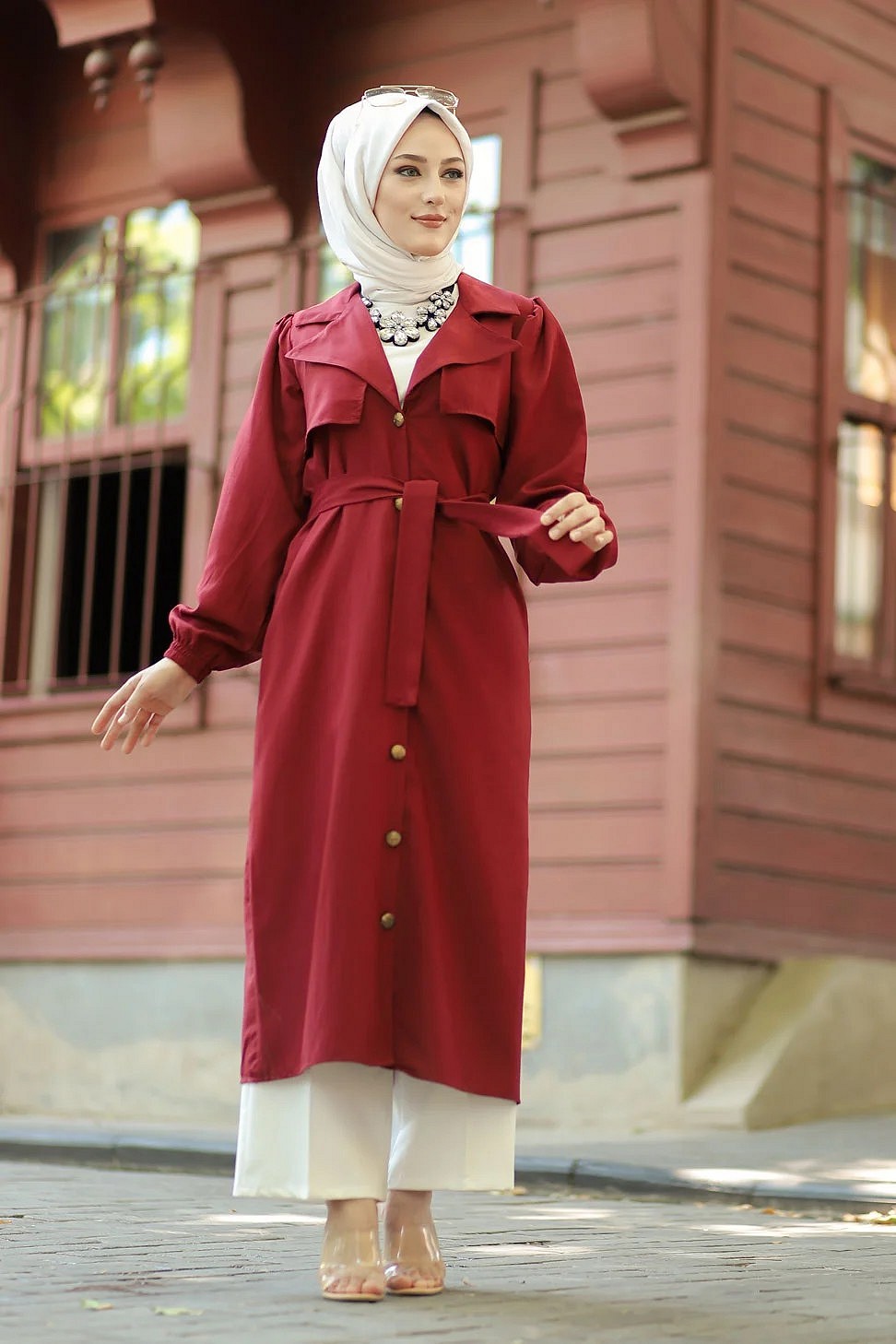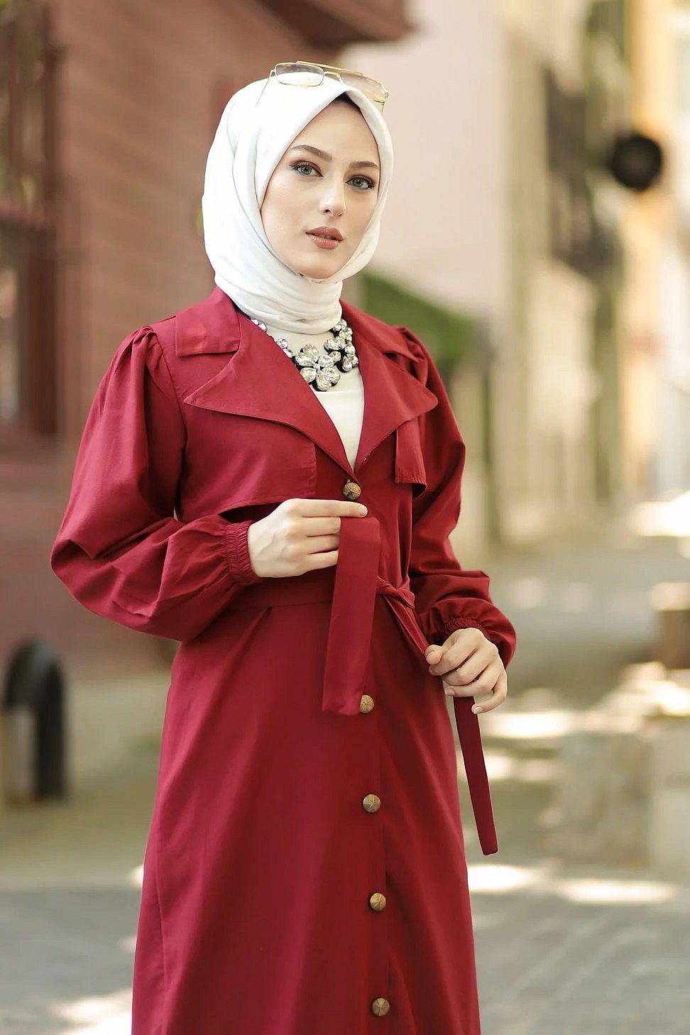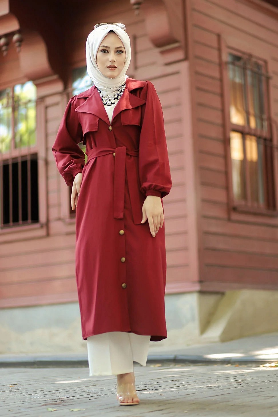 Robe mi longue style Trench (Vêtement hijab) pour femme voilée) - Couleur bordeaux - REF. 33201 (32.00 €)