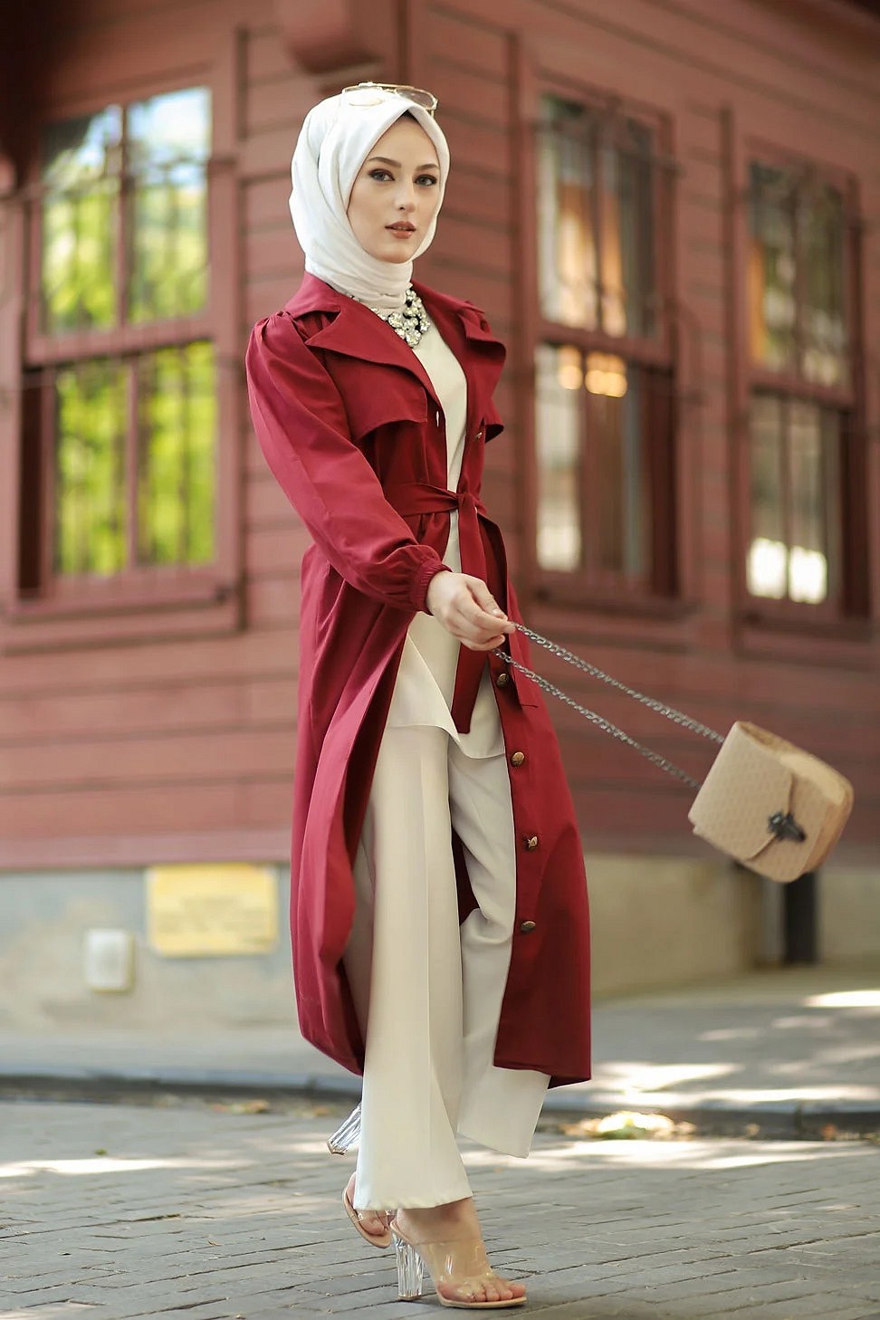 Trench-Coat Long pour femmes (Boutique musulmane en ligne - Mode islamique) - Couleur Genat Vetement & Accessoire