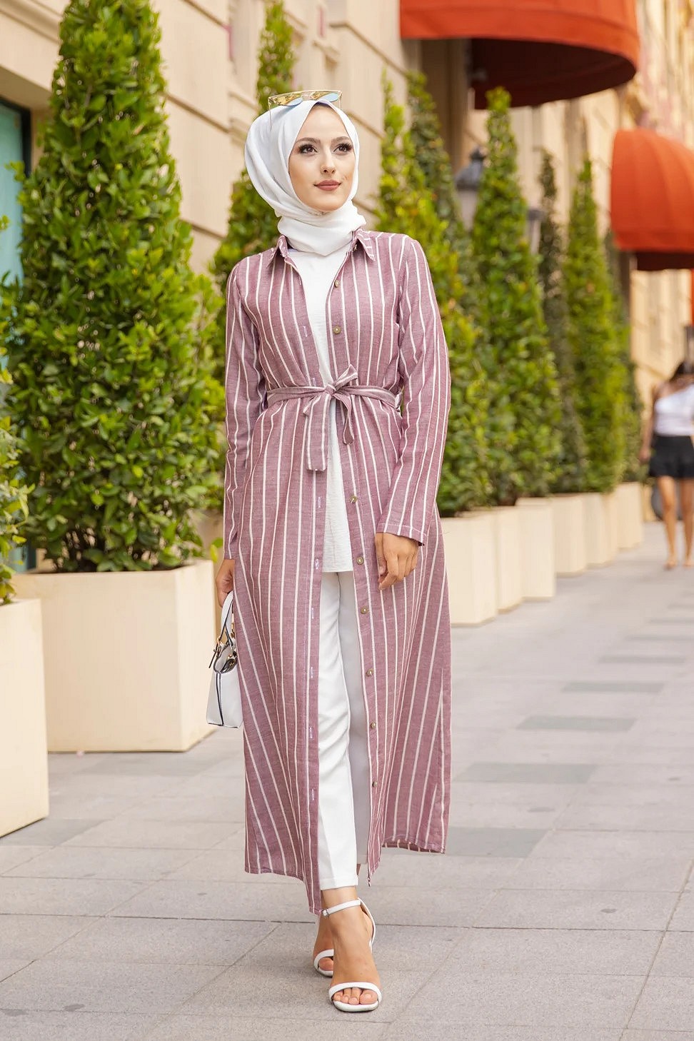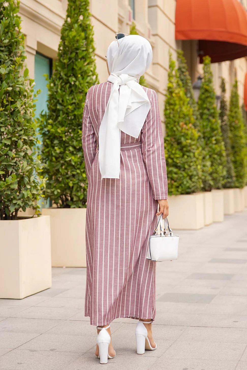 Robe chemise très longue boutonnée, coupe droit, avec un lien à nouer, col classique, manches longues, se porte avec légèreté. On aime son style chic décontracté. Tendance et flatteuse, cette version à rayures a tout pour nous plaire.