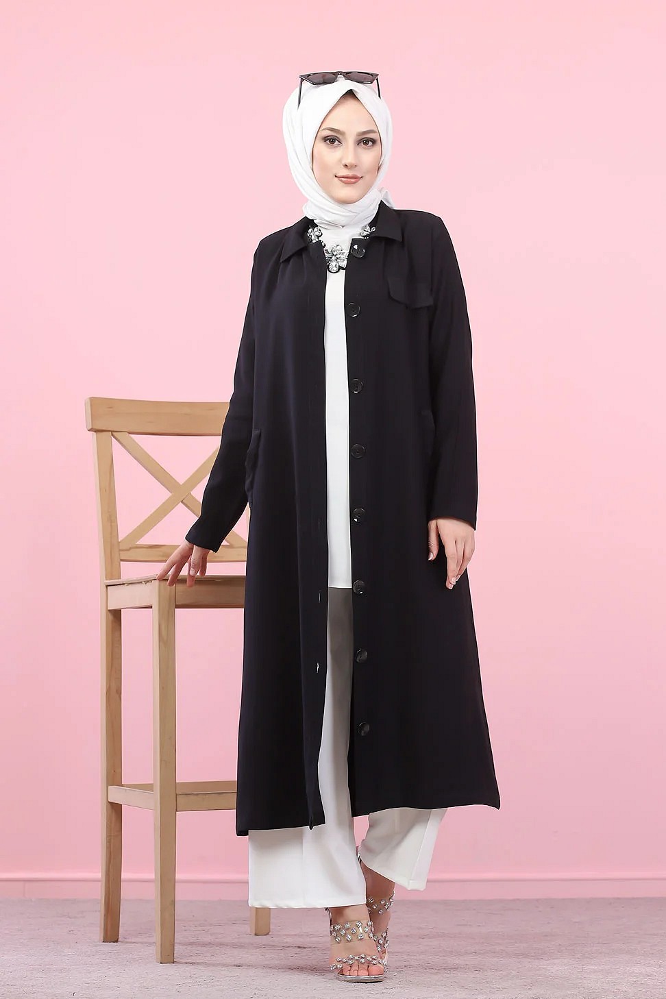 Trench coat Long pour femme (Vetement Mode Musulmane automne Hiver) - Couleur noir - REF. 34637 (29.90 €)