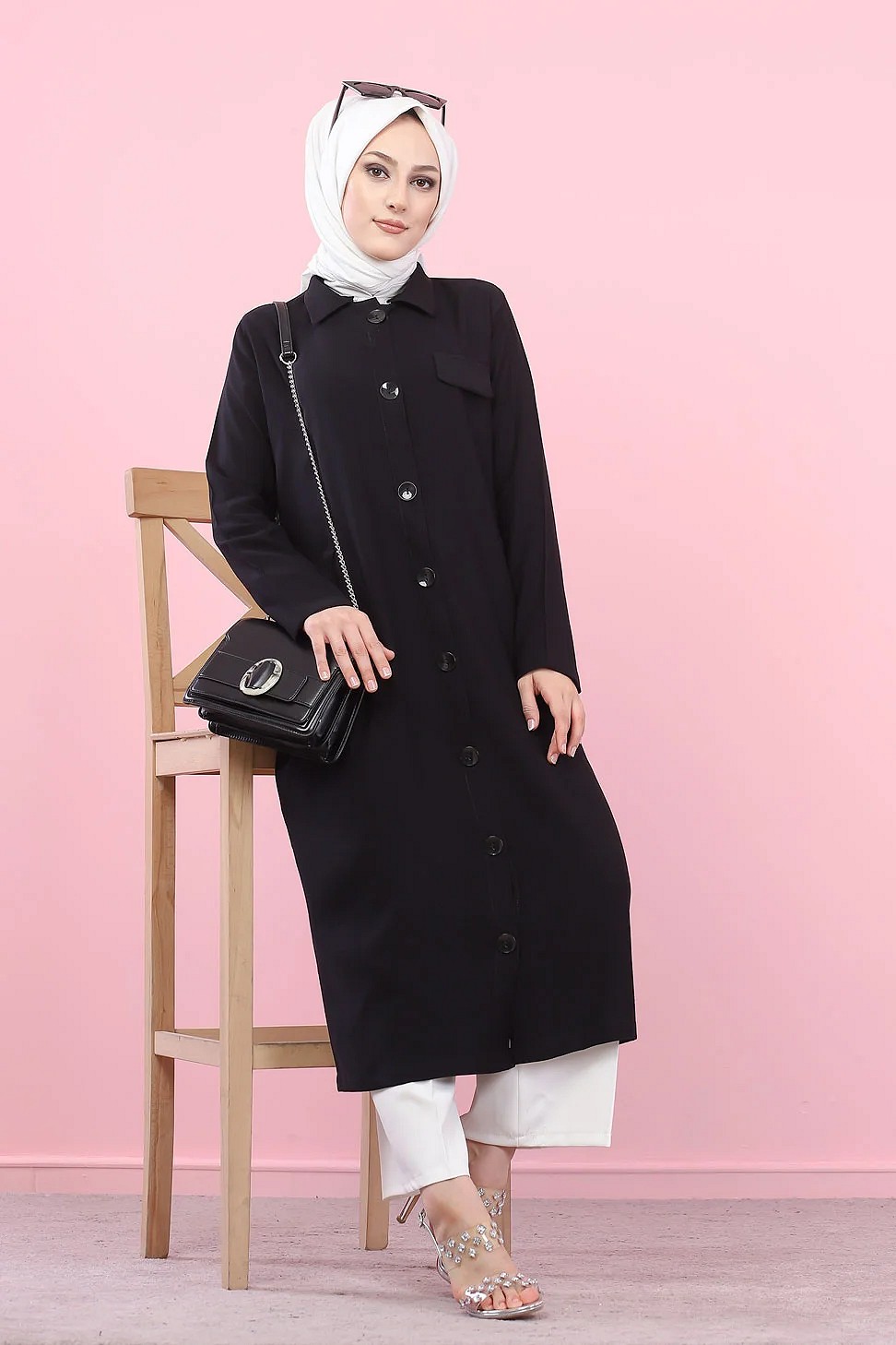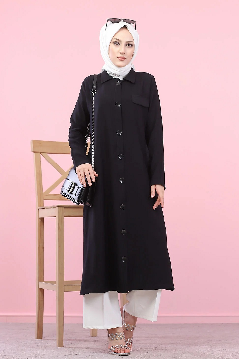 Veste longue pour femme - style chemise (Vetement Hijab) - Couleur noir Vetement & Accessoire