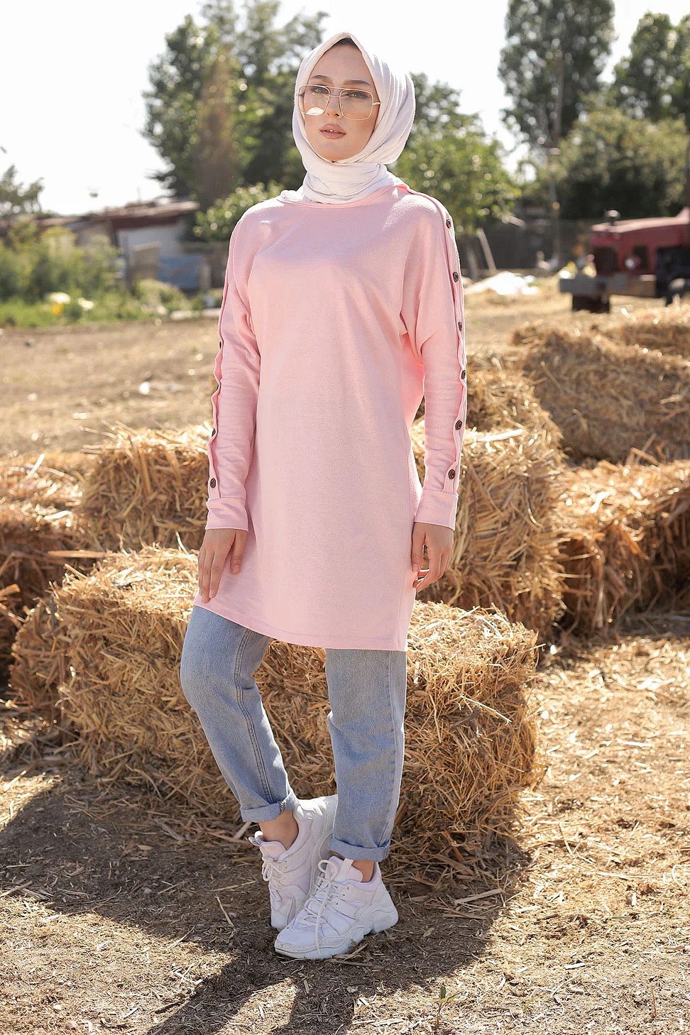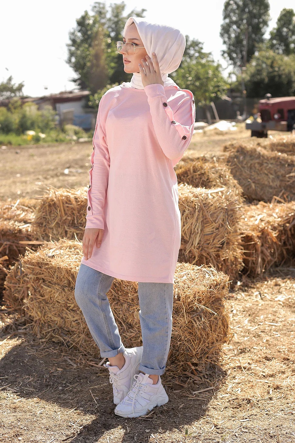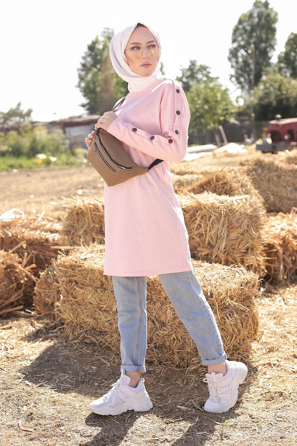 Tunique Casual Style Sweat-Shirt pour femme (Tenue Hijab moderne) - Couleur Rose poudre