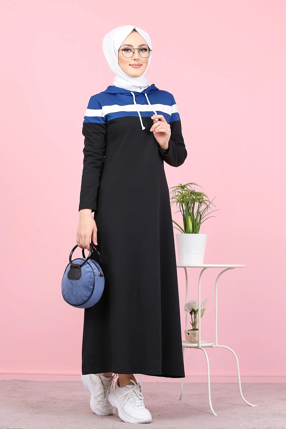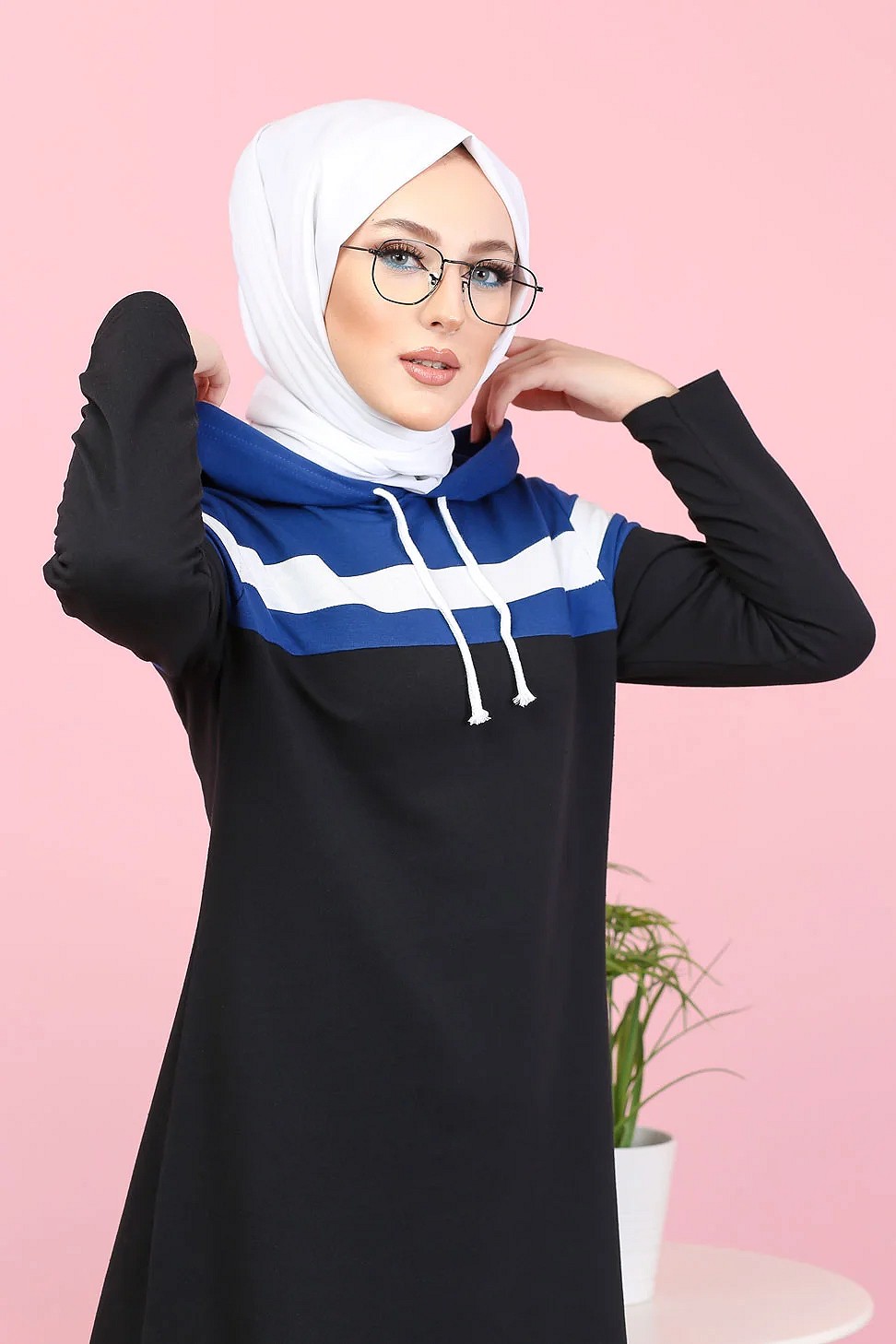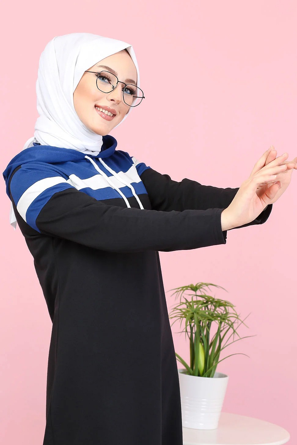 Robe décontractée à capuche de type sportwear - Vêtement Hidjab pour femme musulmane - Couleur noir, blanc et bleu indigo Vetement & Accessoire