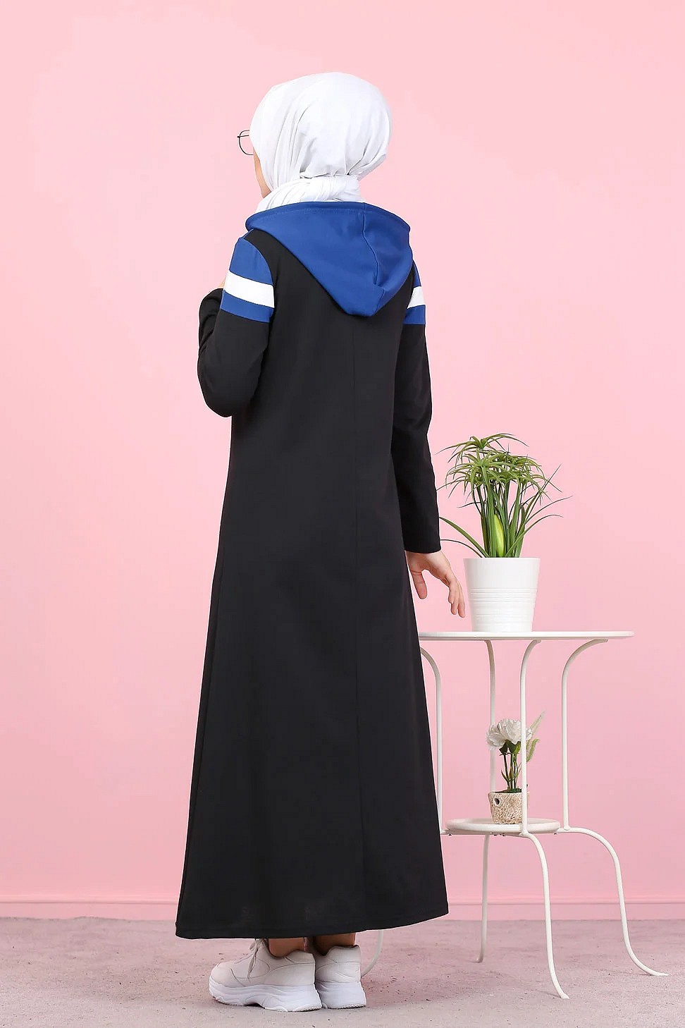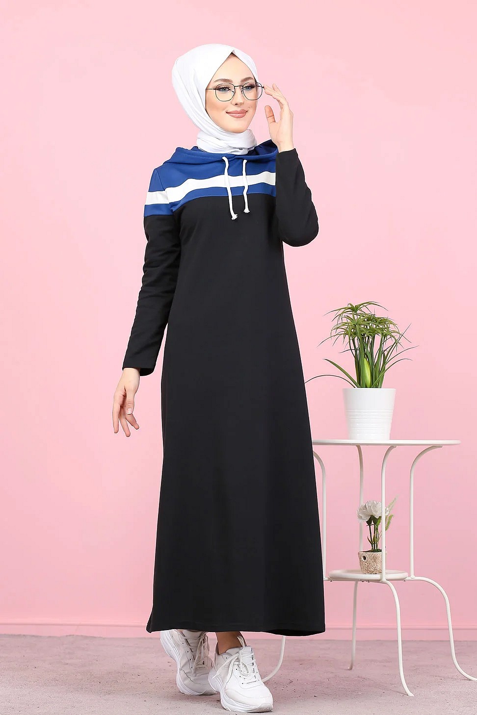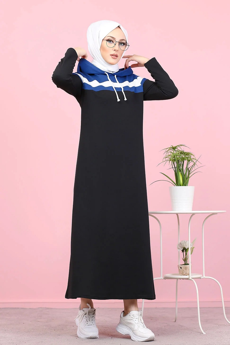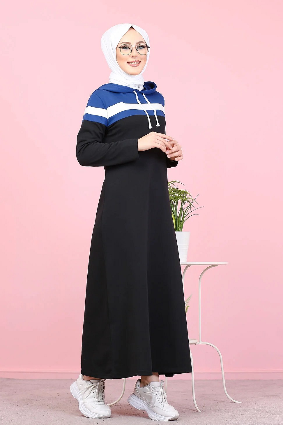 Robe décontractée à capuche de type sportwear - Vêtement Hidjab pour femme musulmane - Couleur noir, blanc et bleu indigo Vetement & Accessoire