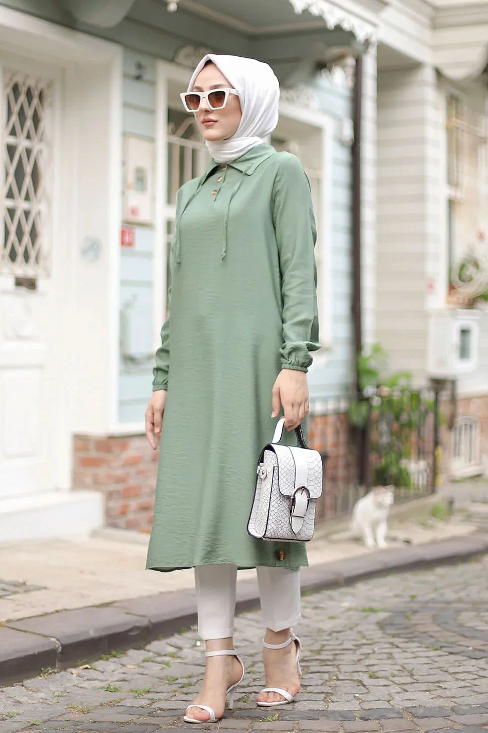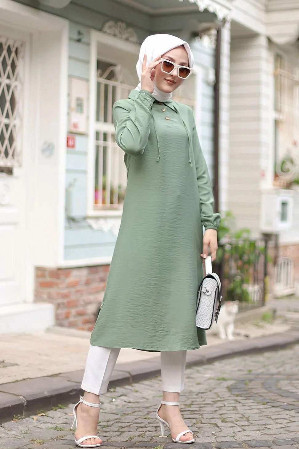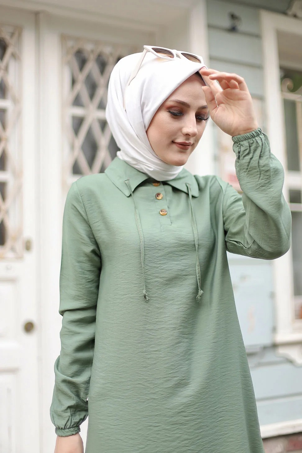 Tunique chemise boutonnée habillée (Vetement pour femme musulmane) - Couleur menthe - REF. 36342 (29.00 €)