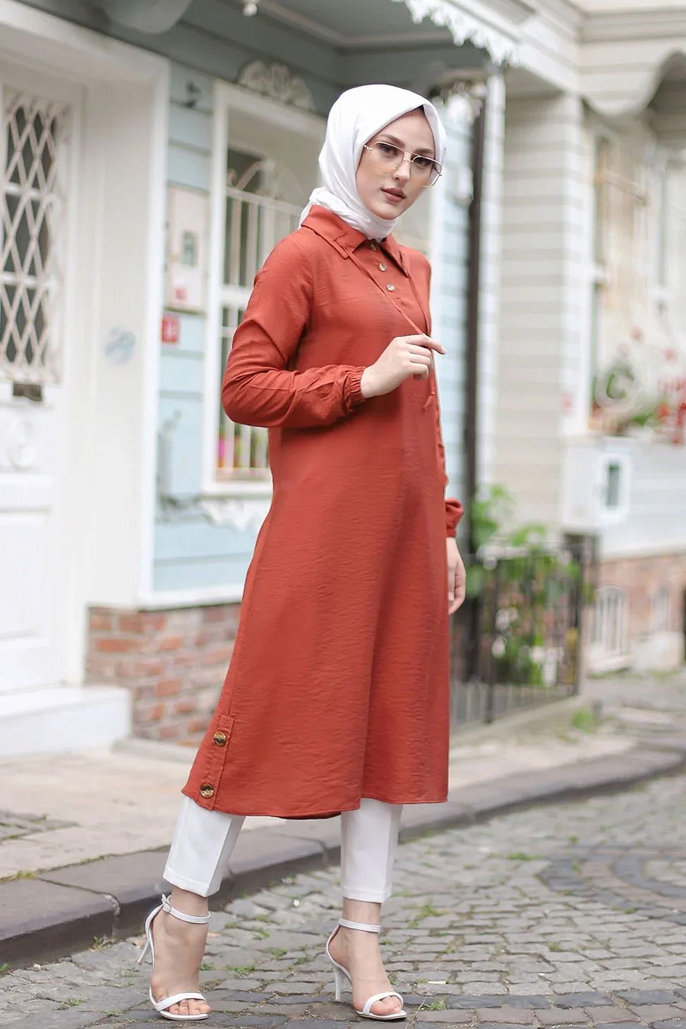 Tunique longue (Tenue musulmane pour femme voilee) - Couleur brique