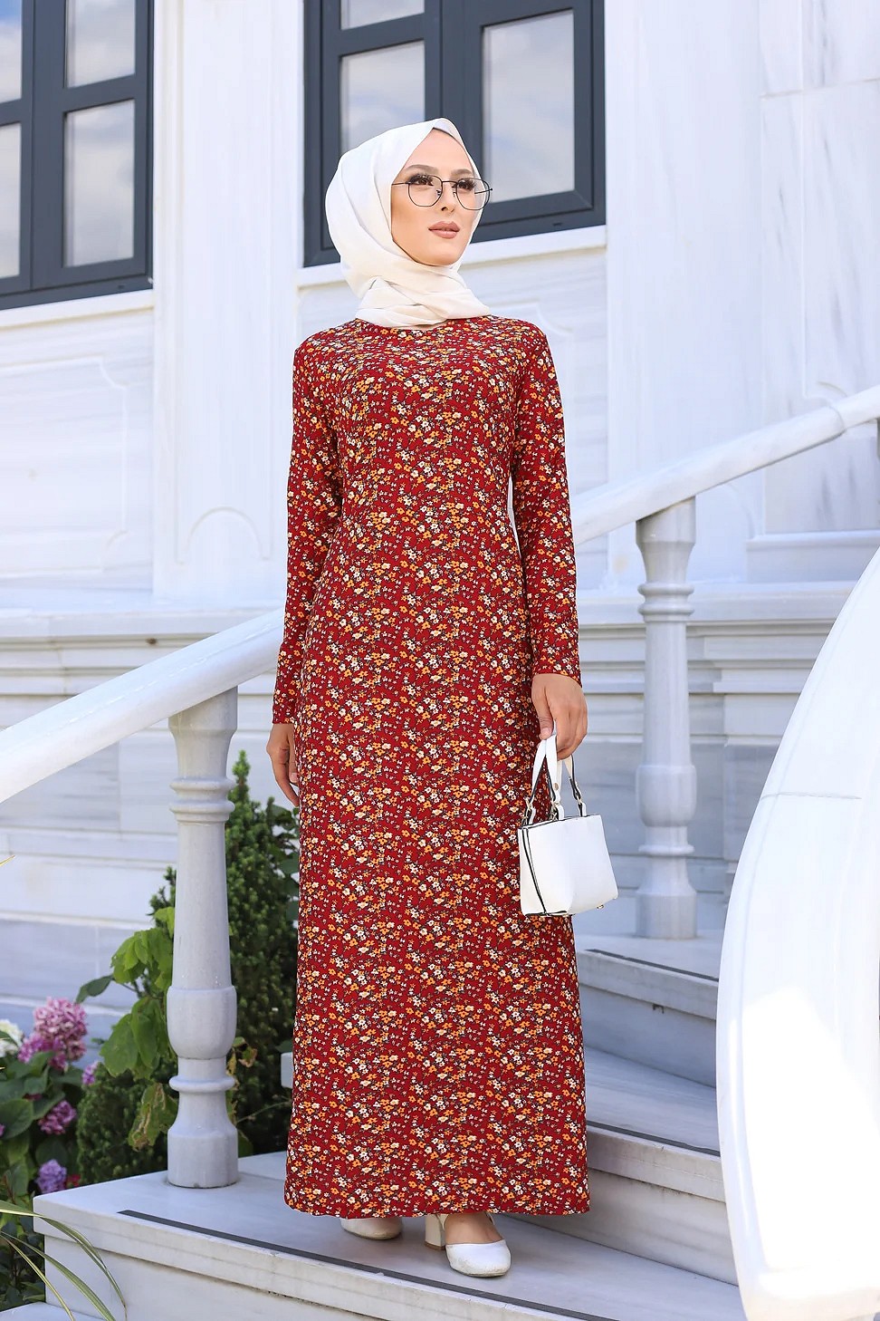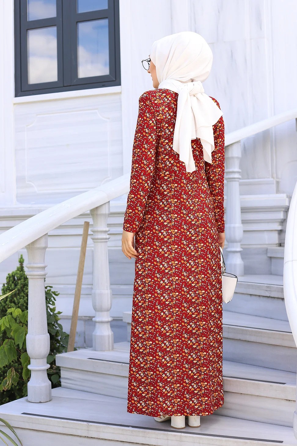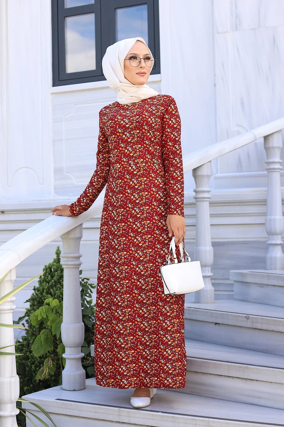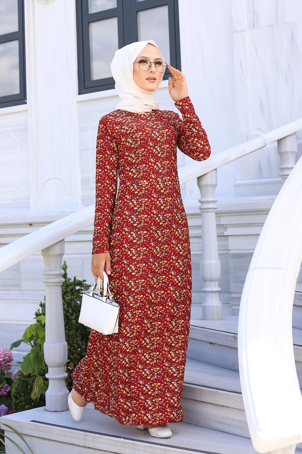 Robe longue à fleurs (Modest Fashion) - Couleur Bordeaux Vetement & Accessoire