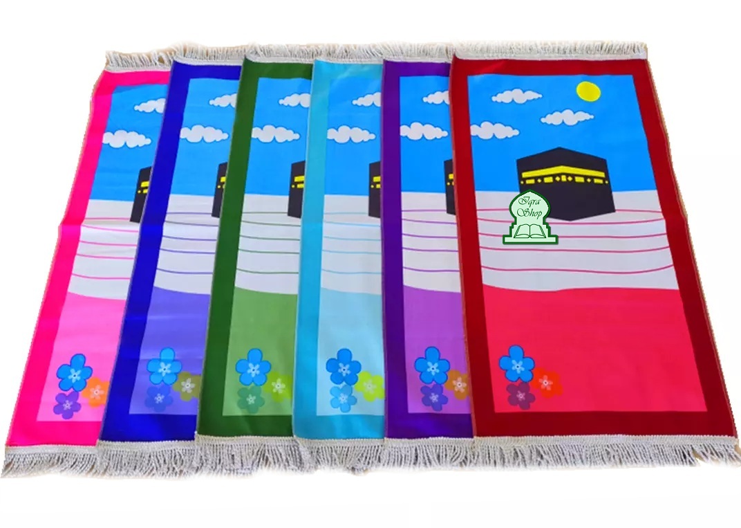 Tapis de prière (Sajjadat-Salat) pour enfants et ados musulmans avec dessin Kaaba (Plusieurs couleurs disponibles) - REF. 32969 (7.50 €) - En Promotion à 5.90 €