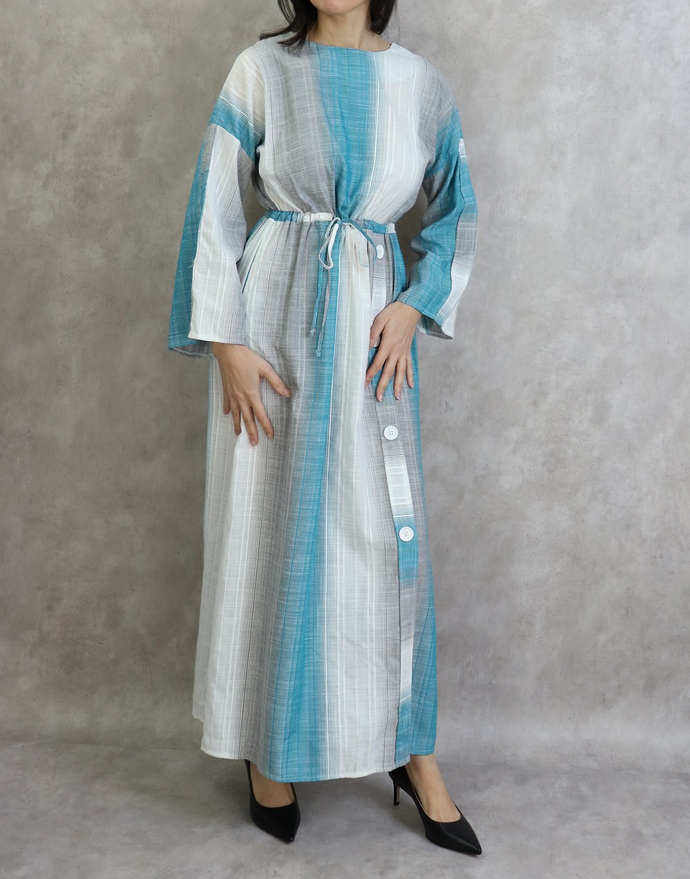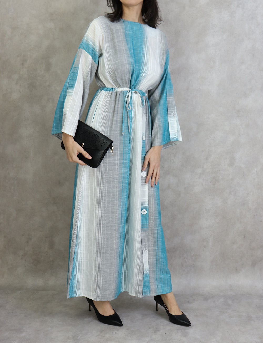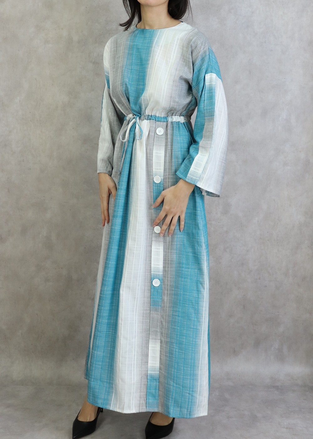 Robe longue effet tisse pour femme de couleur gris clair, turquoise et blanc