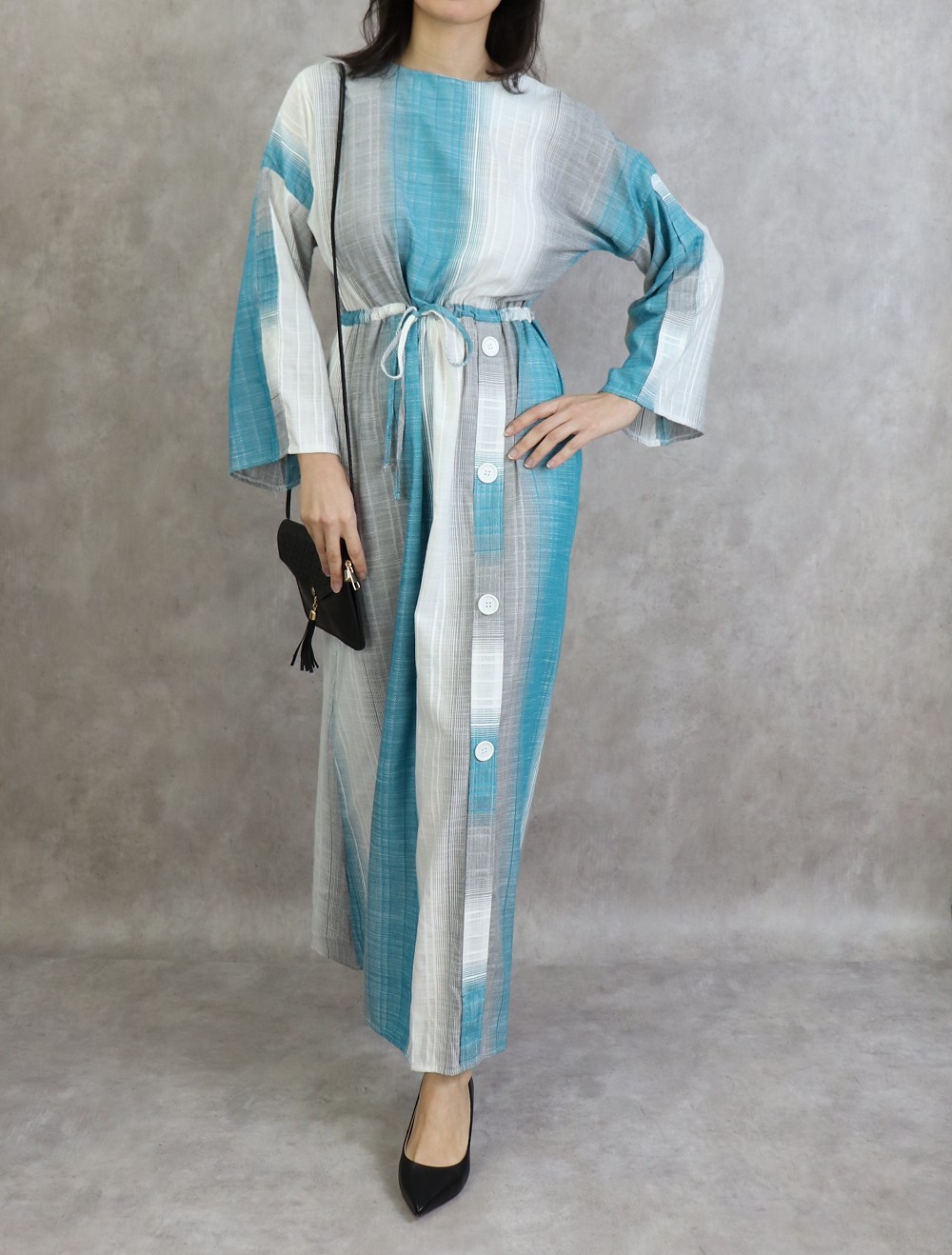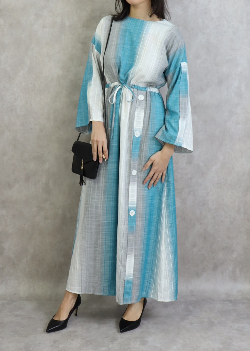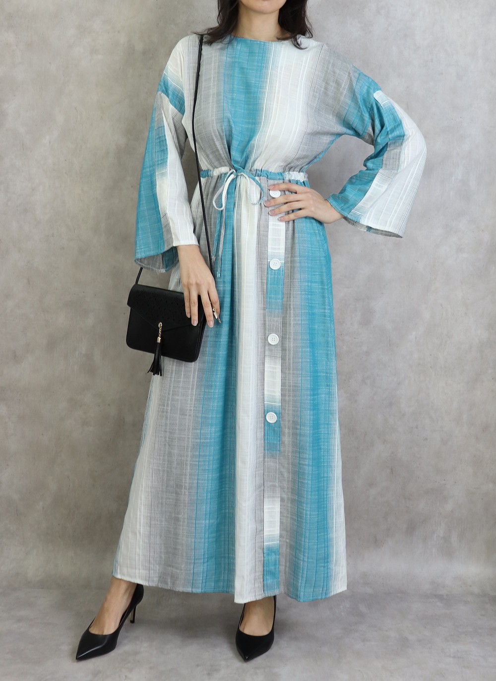 Robe longue effet tisse pour femme de couleur gris clair, turquoise et blanc