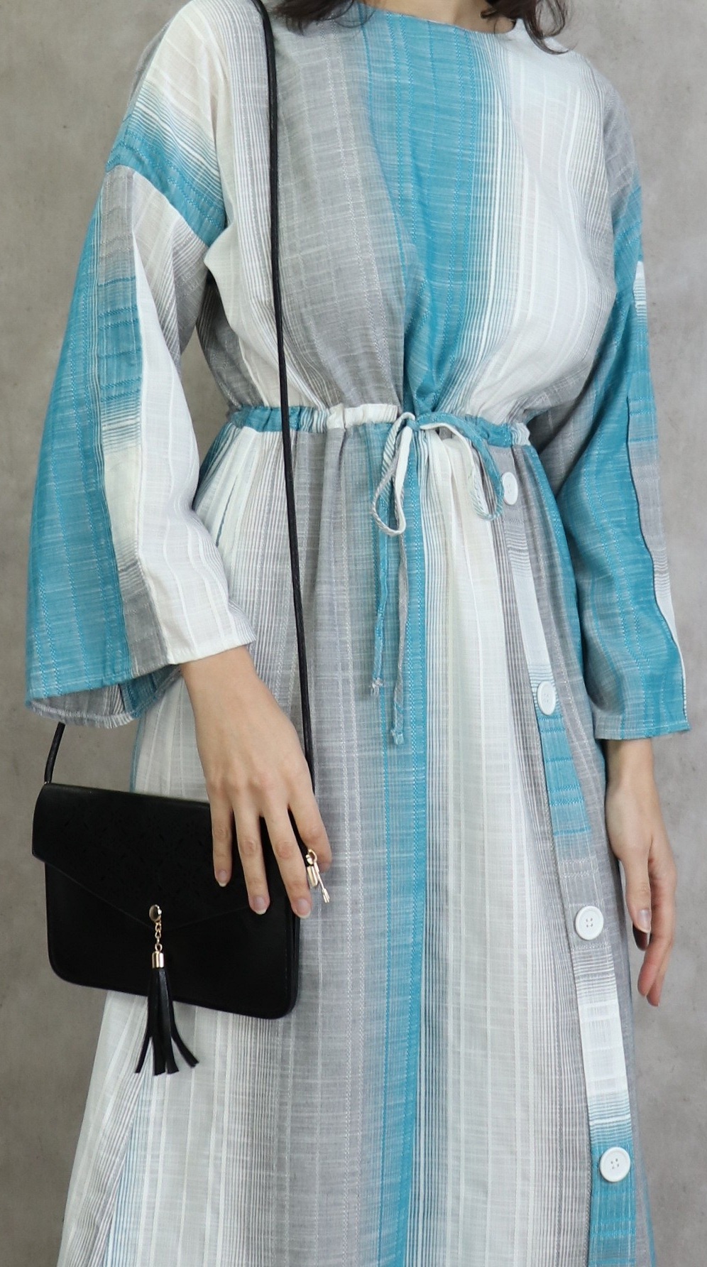 Robe longue effet tissé pour femme de couleur gris clair, turquoise et blanc Vetement & Accessoire