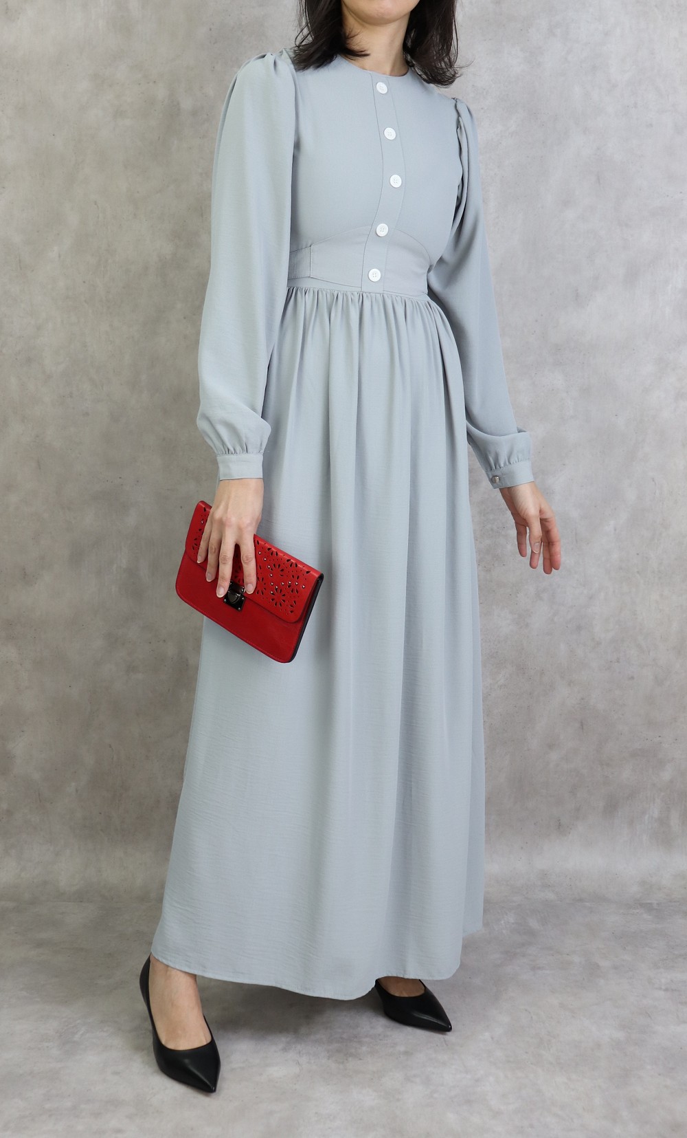 Robe longue froncée pour femme - Couleur gris clair Vetement & Accessoire