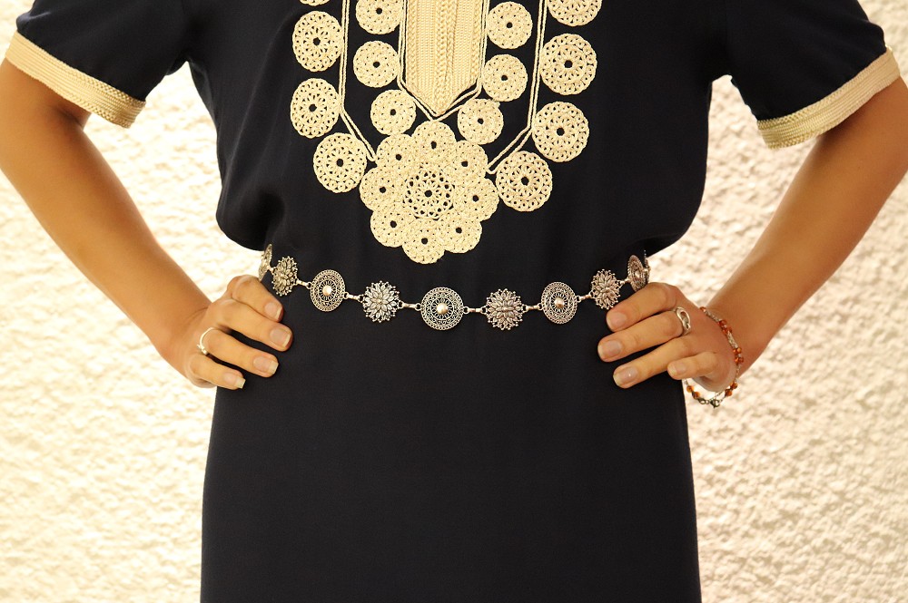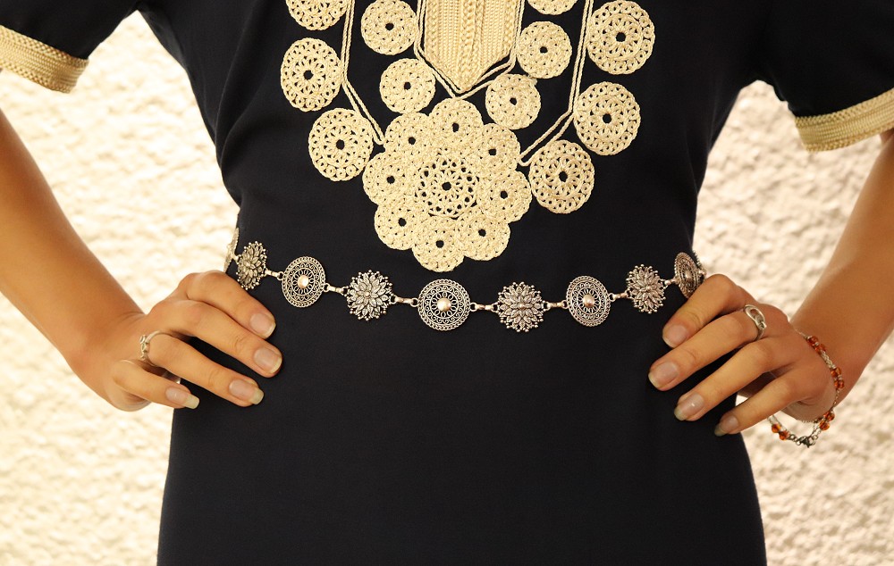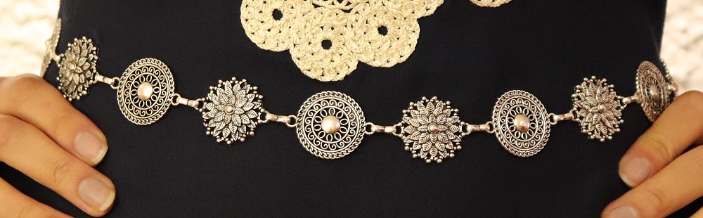 Ceinture argentee ornee de pieces a motifs originaux