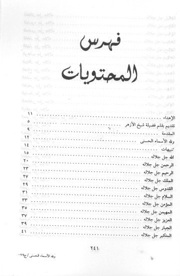 قال الله تعالى " أمن يجيب المضطر اذا دعاه " لا احد الا الله، وقد عنون المؤلف كتابه بالآية التي فيها الامر بأن ندعو الله بأسمائه الحسنى، فدعاء الله فطرة انسانية وحاجة بشرية وفريضة شرعية وقرينة ايمانية كما في الحديث " الدعاء هو الايمان " فالداعي عرف ان له ربا" يدعوه . وقد بين المؤلف معاني وبعض اسرار 99 من اسماء الله واضاف عليها اسم الرب الواردة في بعض الروايات، ثم بين دعاء بعض الانبياء، اثبت في كتابه منظومة الدردير في اسماء الله، وختم بملحق في عدد الحروف عند المشارقة والمغاربة وخصائص اسم الله والرحمن وتكلم على " هو " . وقد قدم له شيخ الازهر الشيخ عبد الحليم محمود رحمه الله