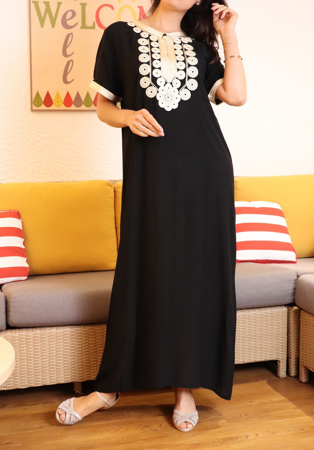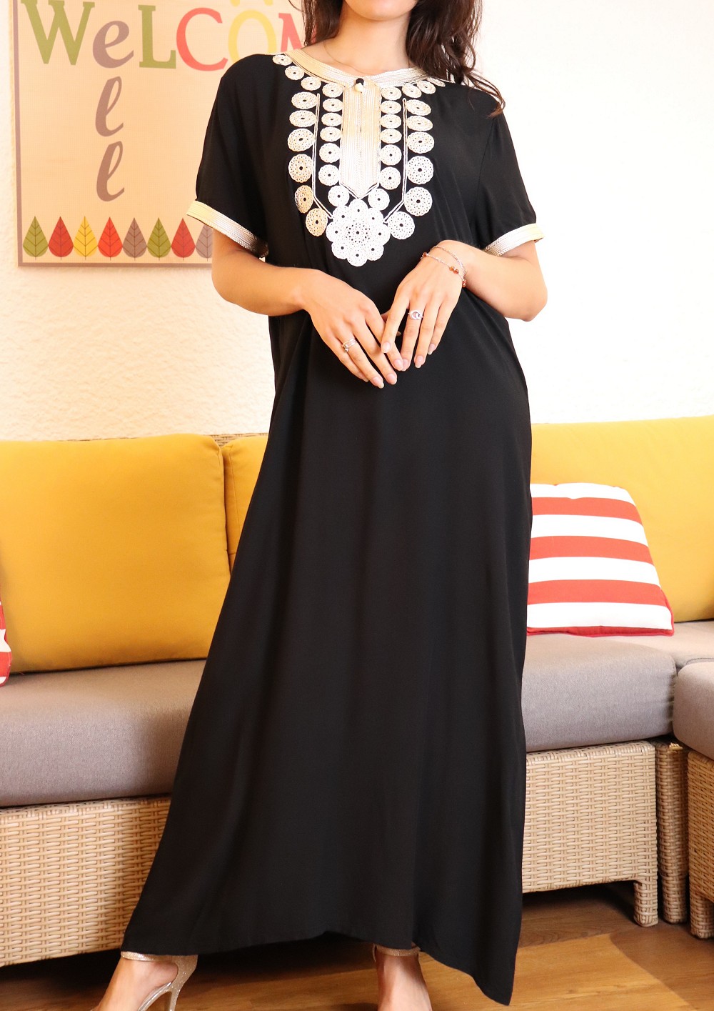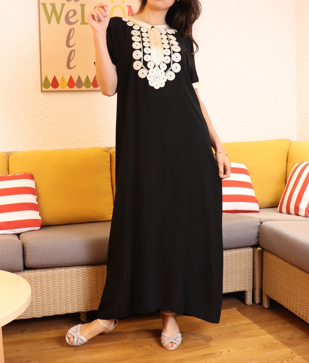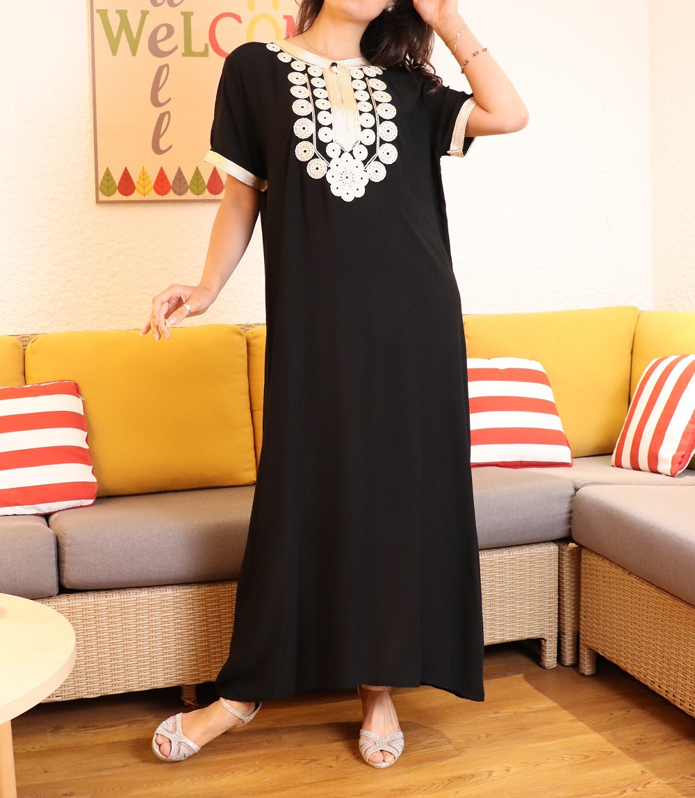 Robe style oriental pour la maison et l'été (Robes extra-large et grande taille pour femme) - Couleur motifs Noir - REF. 36060 (14.90 €)