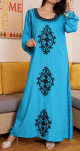 Robe orientale longue à strass et broderies en coton pour femme - Couleur Bleu - REF. 33422 (25.00 €)