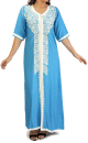 Robe marocaine traditionnelle brodée pour femme - Manches courtes - Couleur Bleu ciel - REF. 29828 (35.00 €)