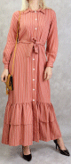 Robe longue à rayures ceinture intégrée (Vetement femme voilée) - Couleur Beige - REF. 33884 (19.90 €)