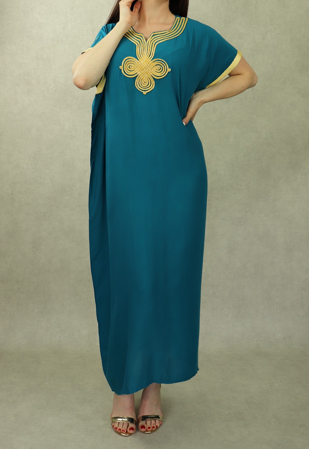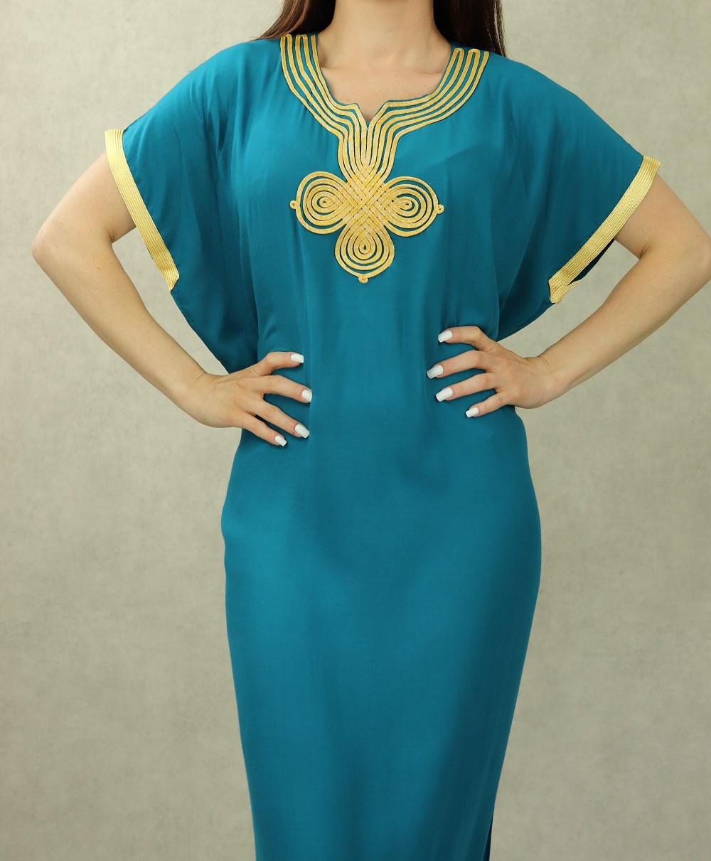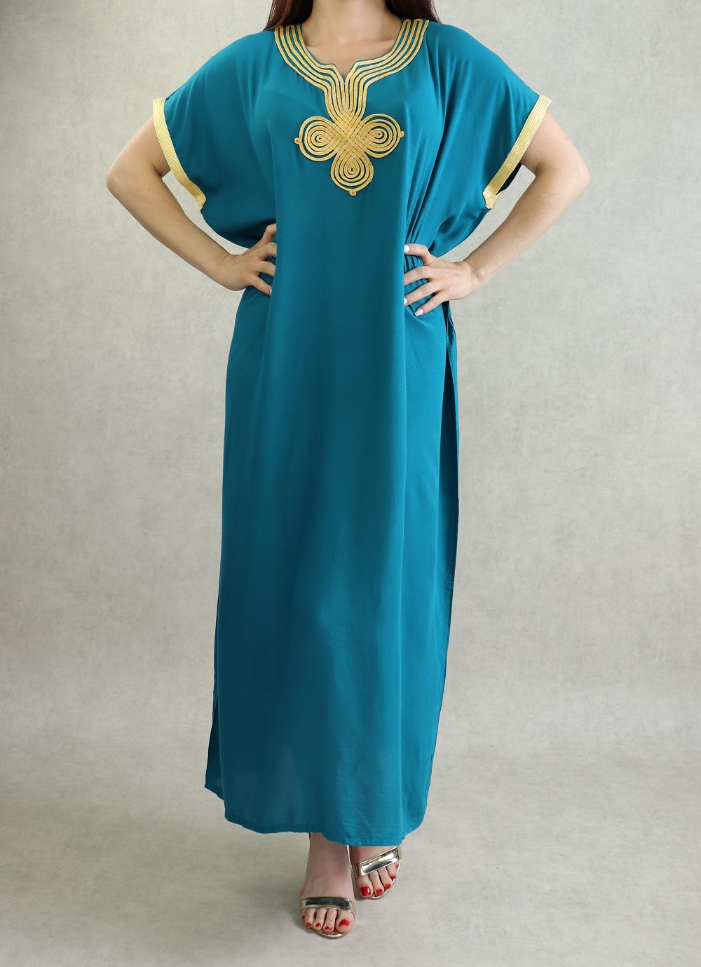 Belle Robe Orientale de type gandoura tunisienne. Coupe droite, tissu fluide et doux de type coton.