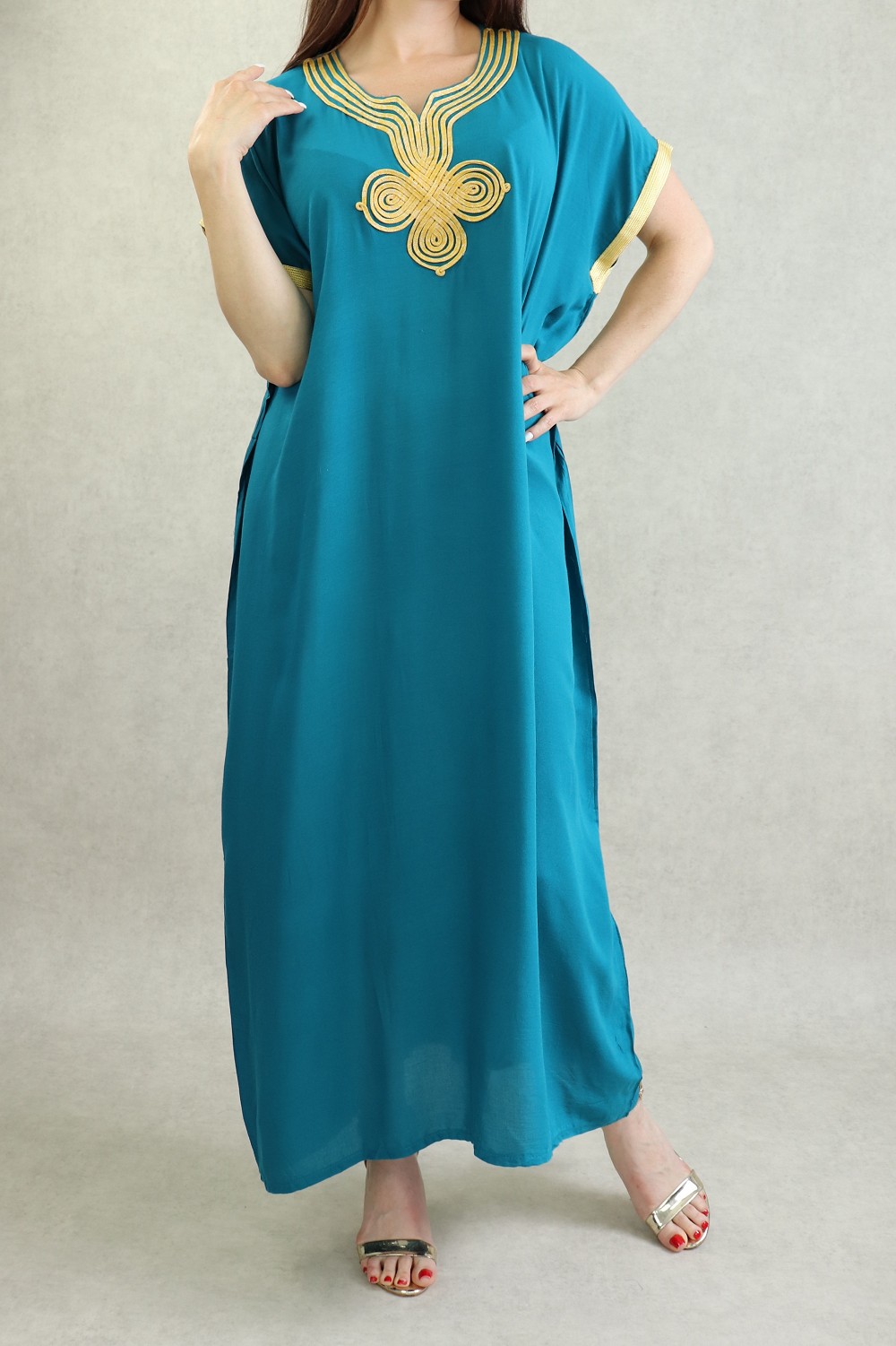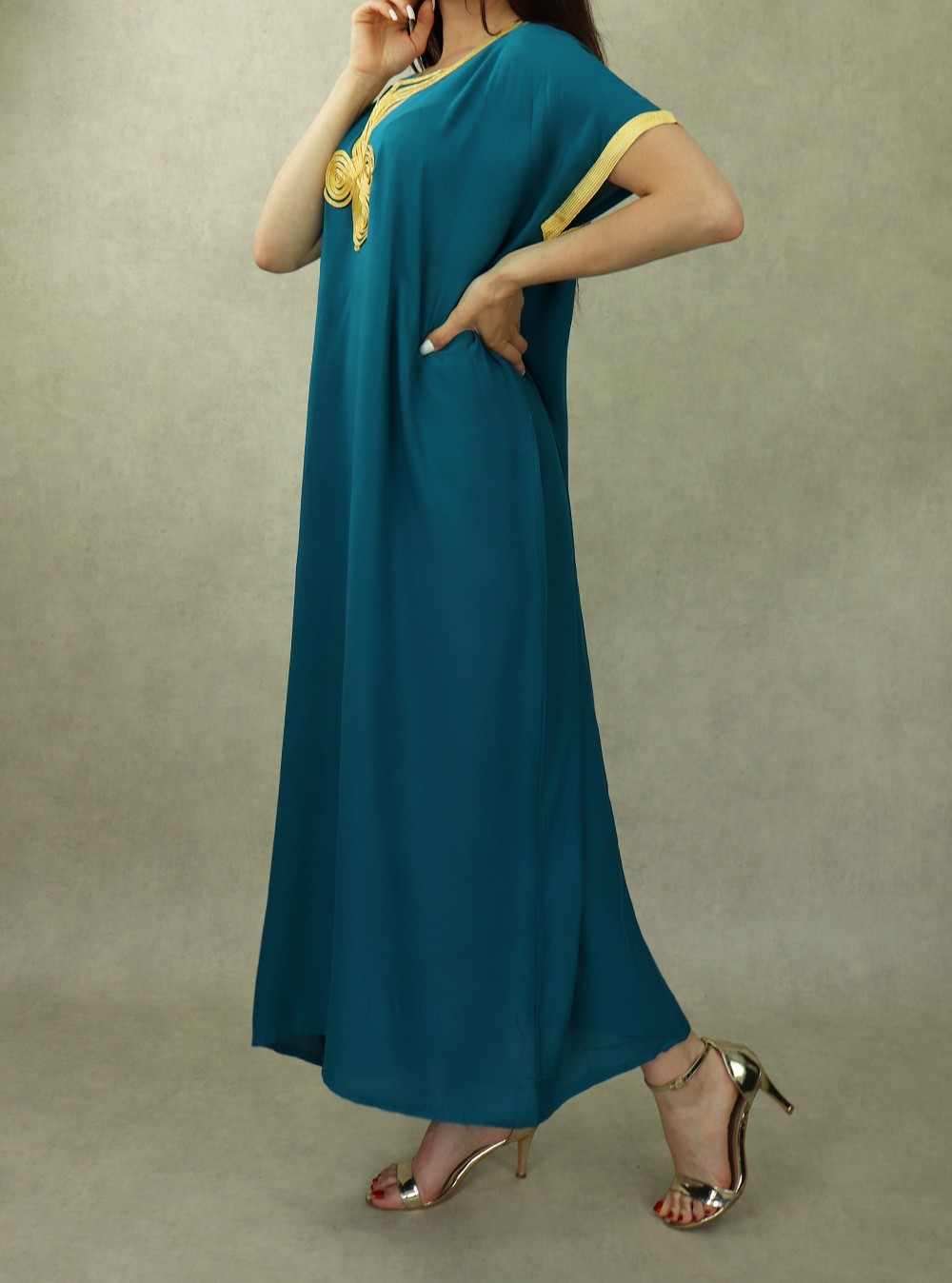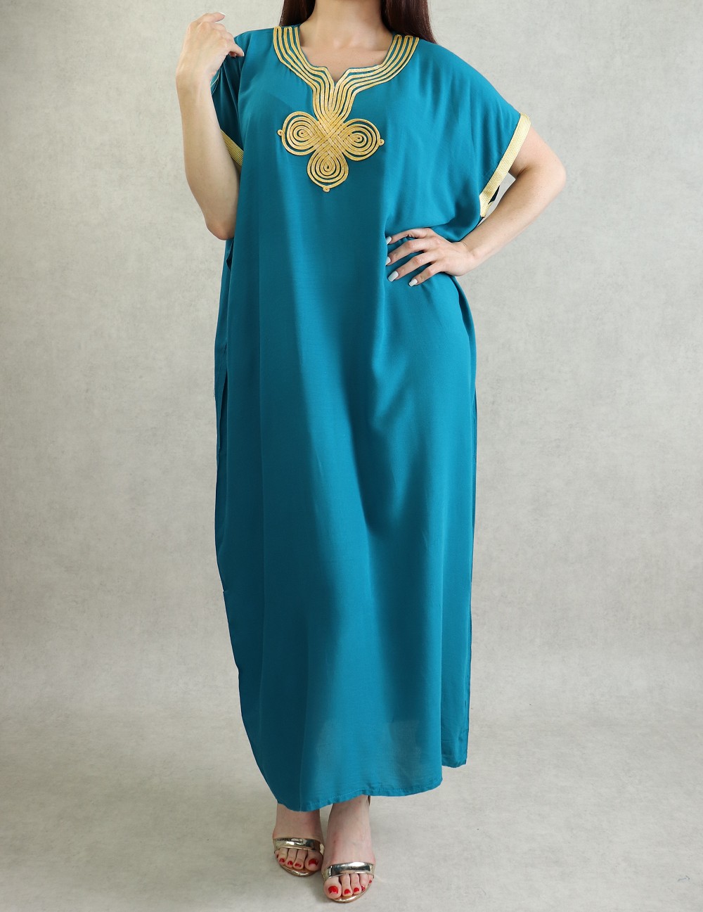 Belle Robe Orientale de type gandoura tunisienne. Coupe droite, tissu fluide et doux de type coton.