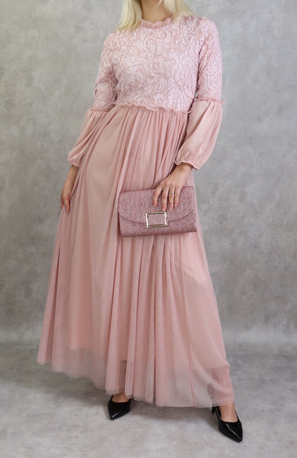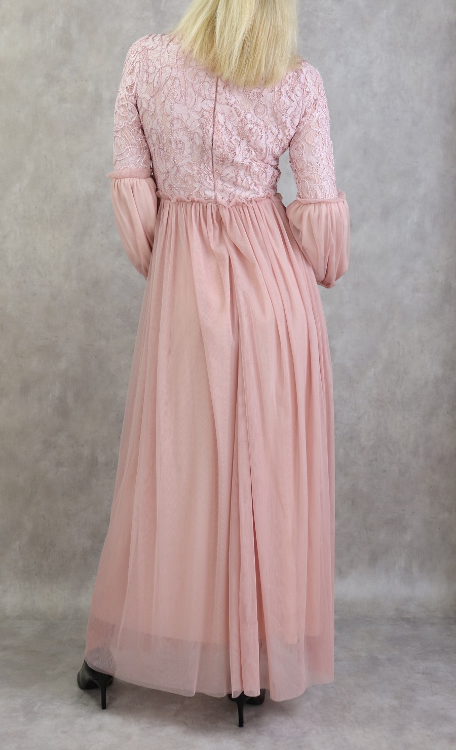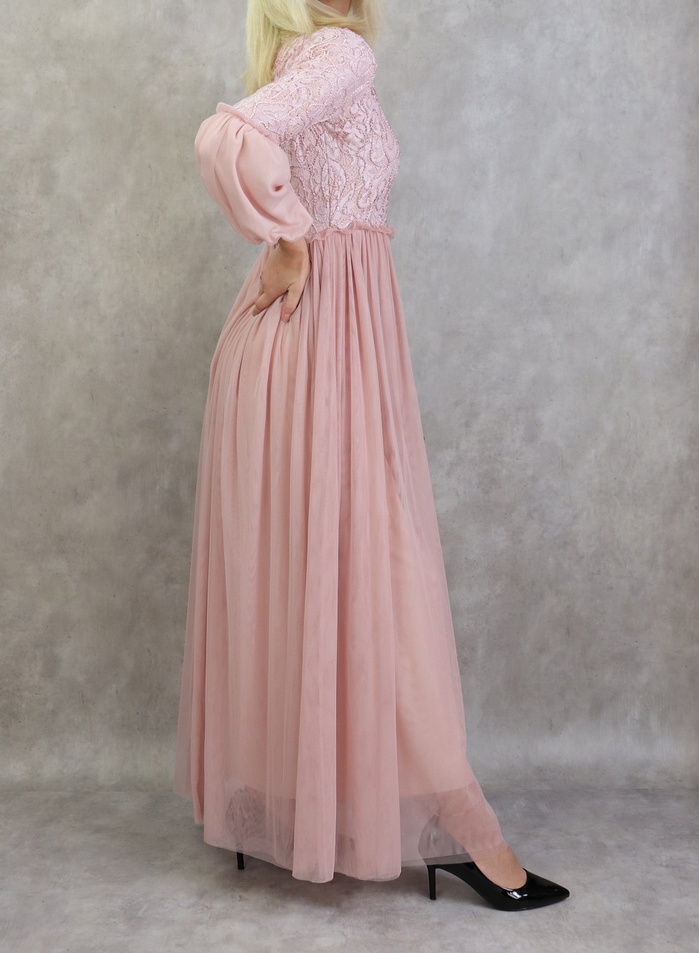 Robe de soirée en tulle et dentelle brodée longue pour femme - Couleur blanche rose poudré Vetement & Accessoire