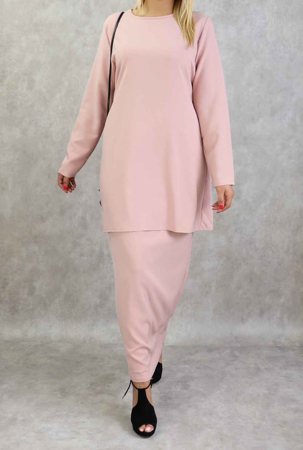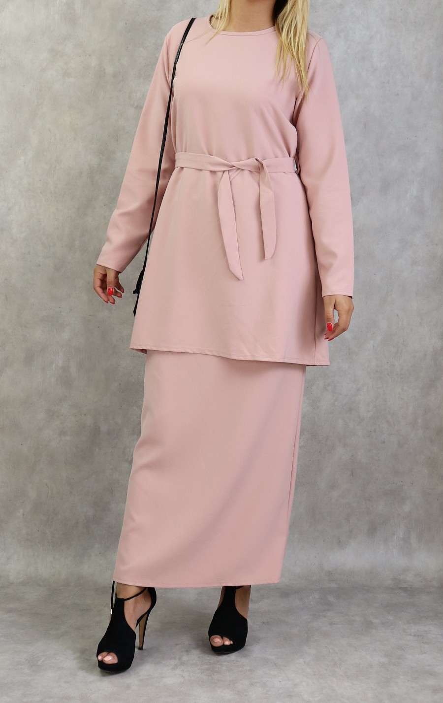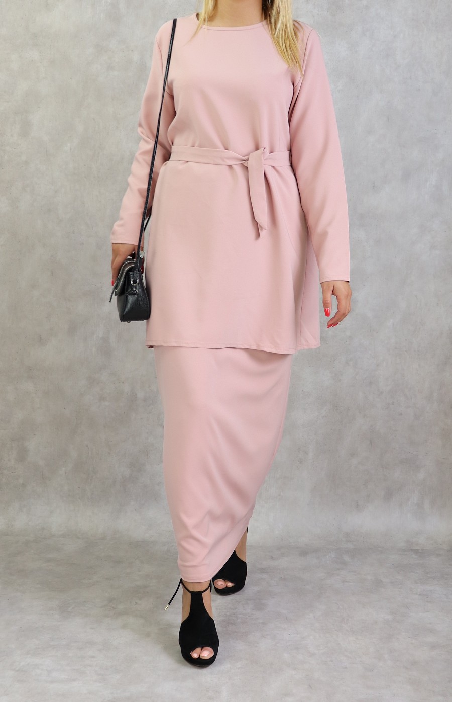 Ensemble deux pièces haut et jupe (Vetement mastour pour femme voilée) - Couleur rose - REF. 32839 (29.90 €) - En Promotion à 24.90 €