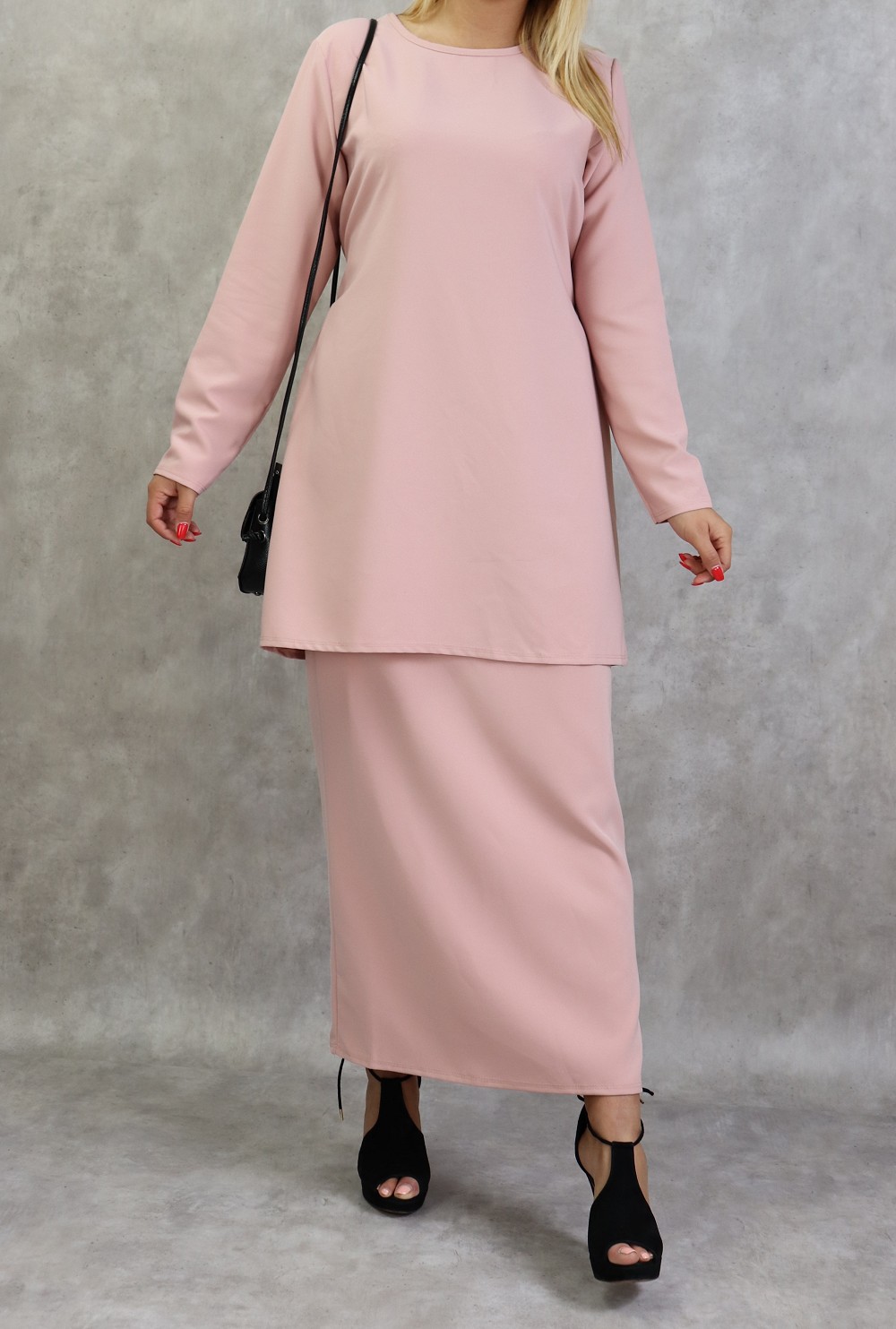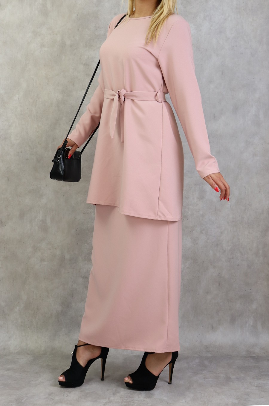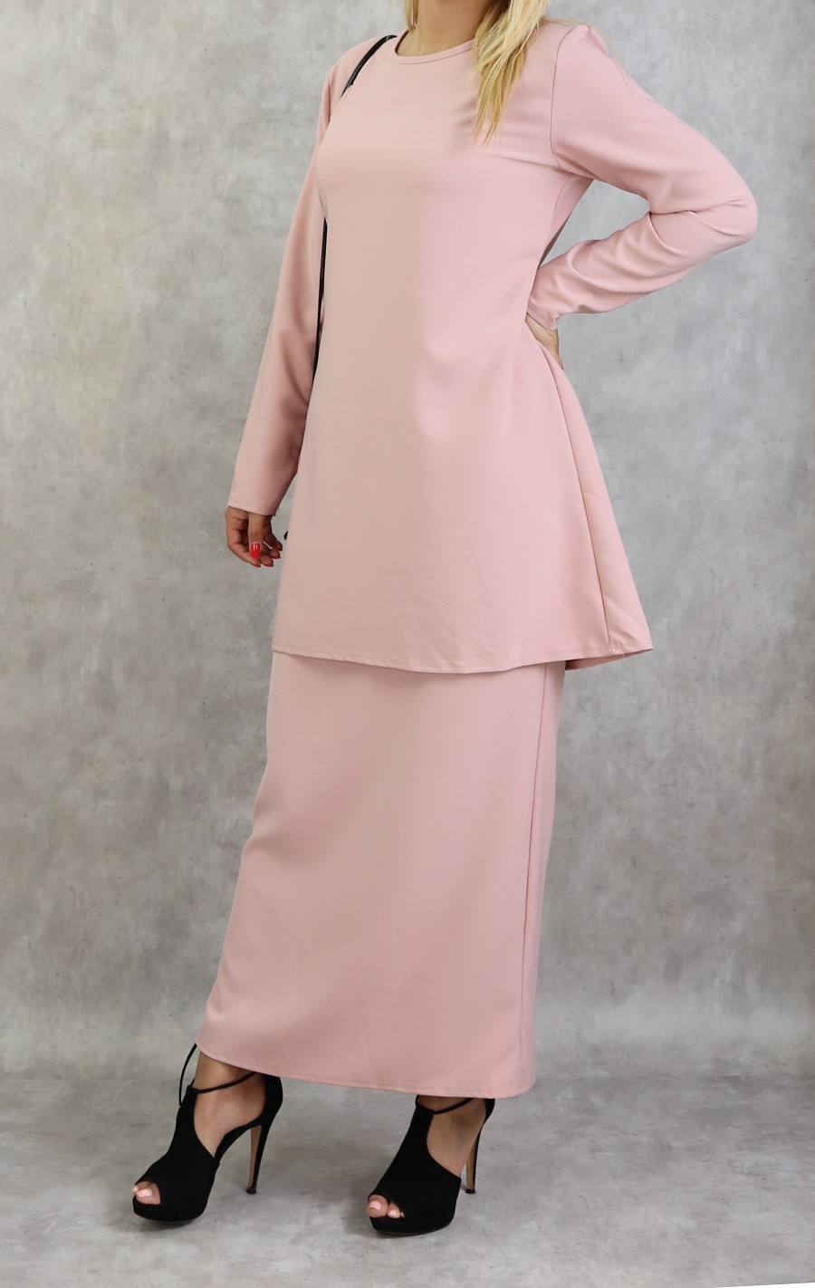 Ensemble deux pièces haut et jupe (Vetement mastour pour femme voilée) - Couleur rose - REF. 32839 (29.90 €) - En Promotion à 24.90 €