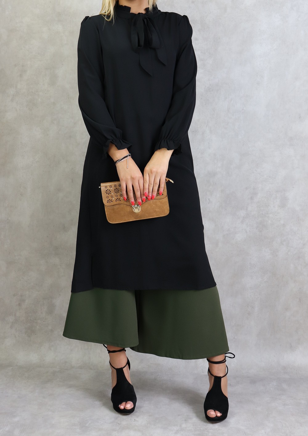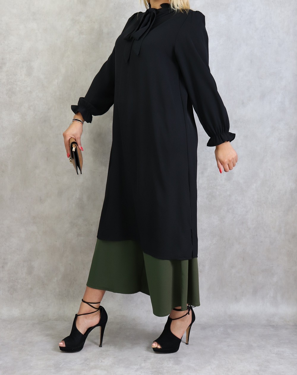 Tunique bicolore (Vetement pour femme voilée) - Couleur noir et kaki - REF. 35550 (19.90 €) - En Promotion à 14.90 €
