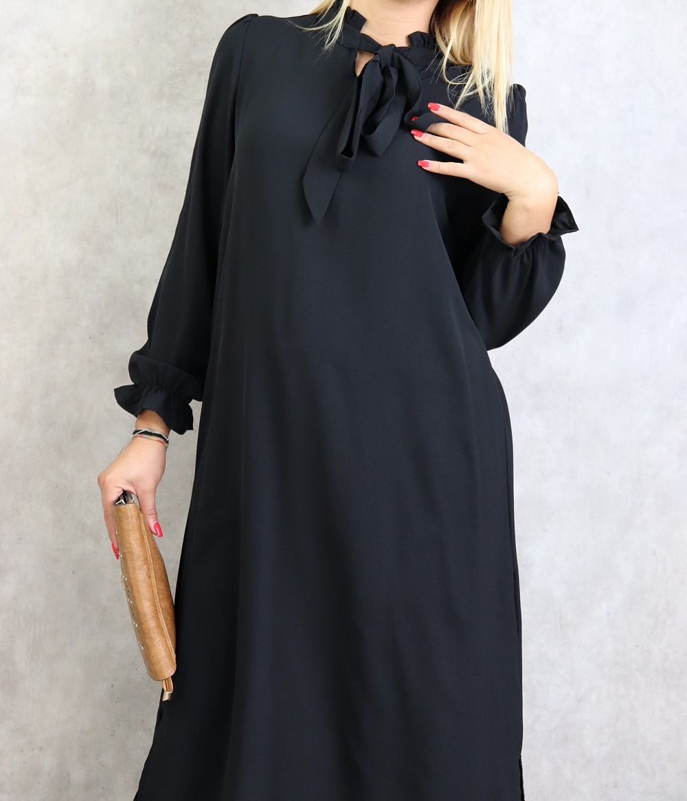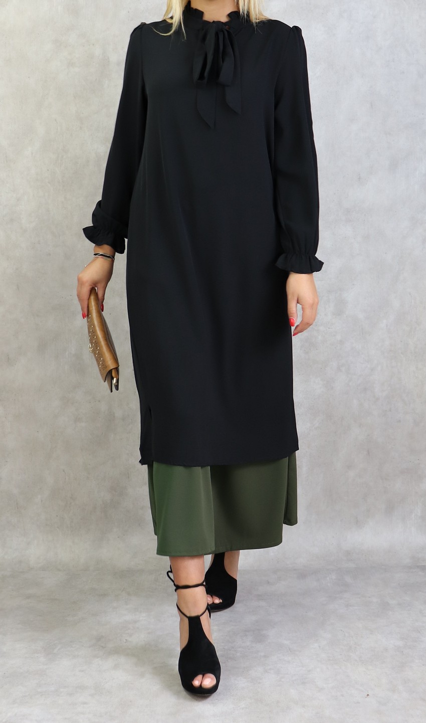 Tunique longue avec col nœud de couleur noire Vetement & Accessoire