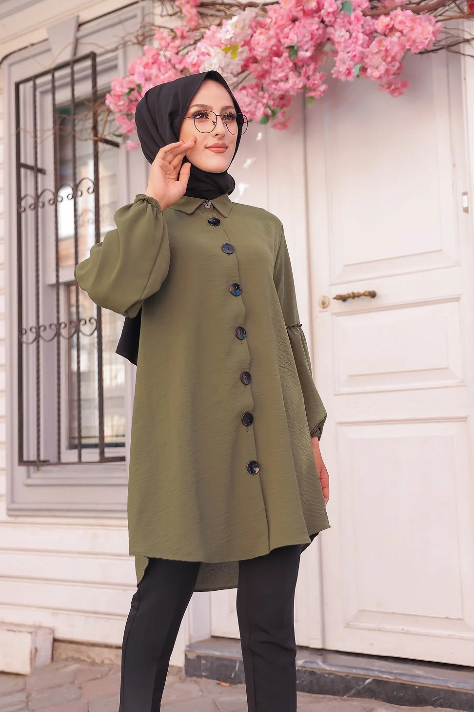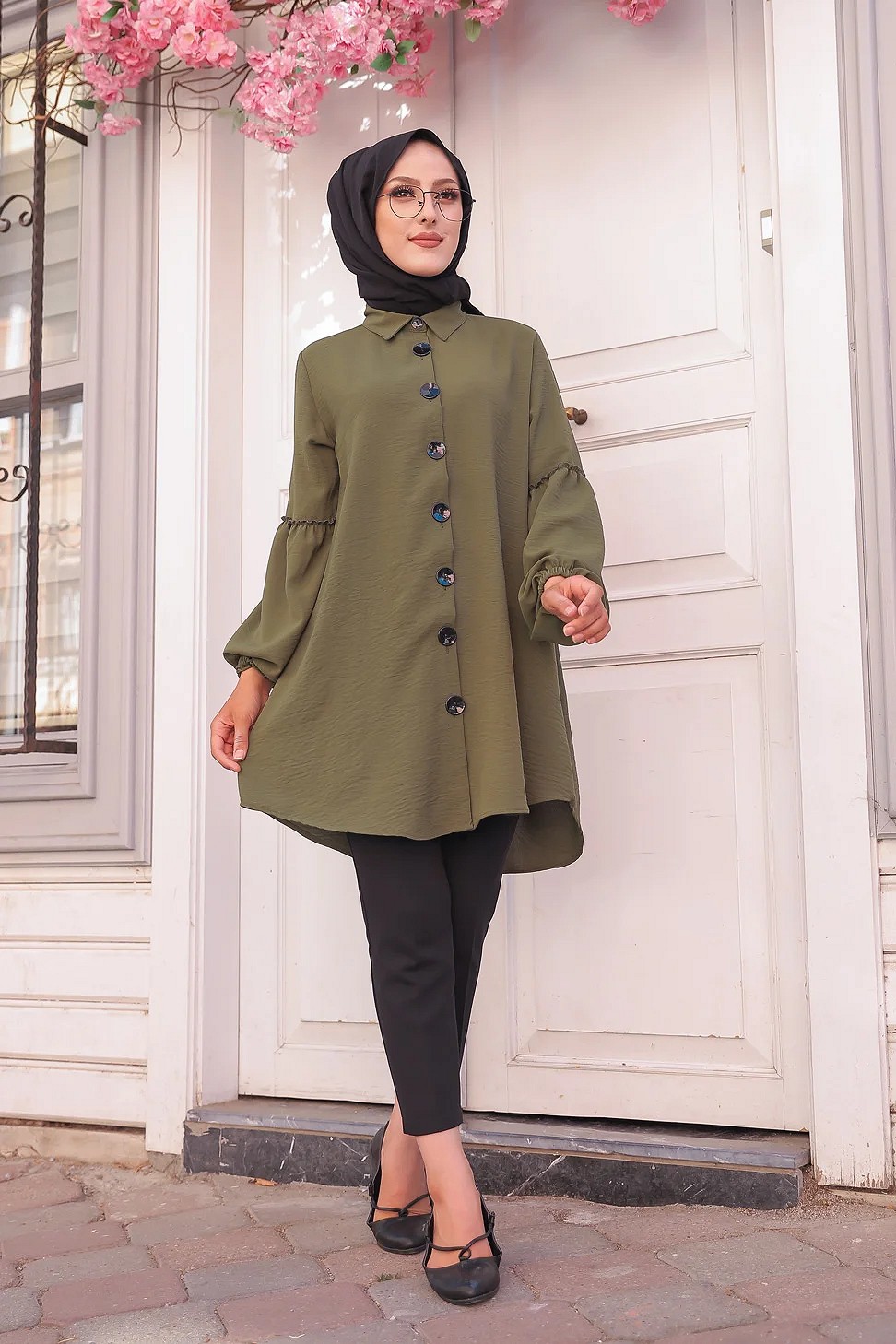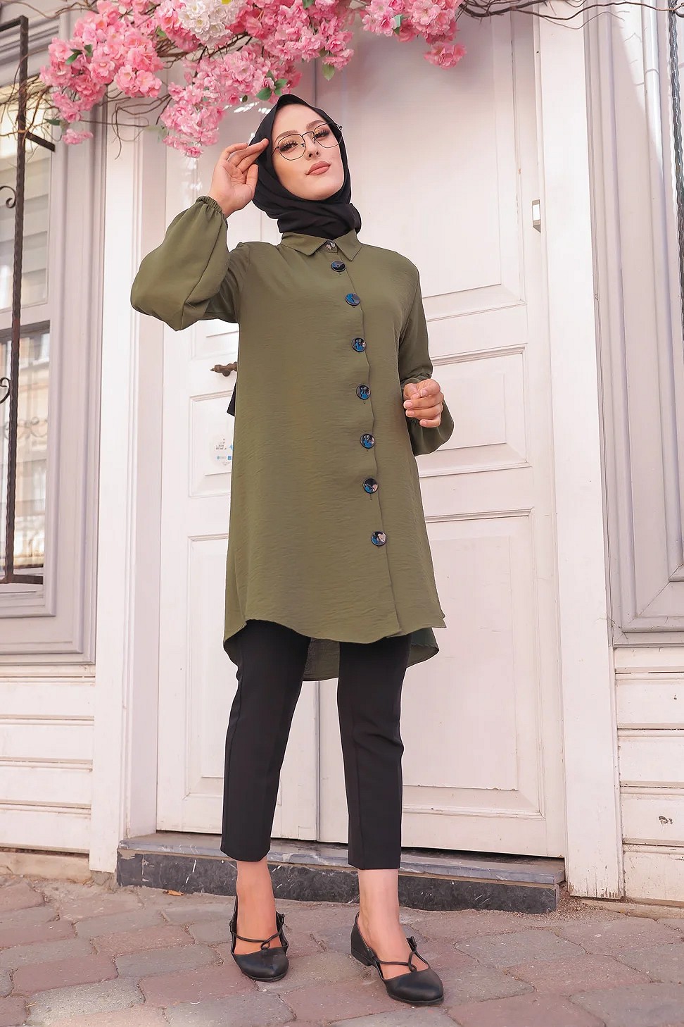 Tunique Chemise ample fermeture boutons pour femme (Vetement Mastour Hijab) - Couleur kaki