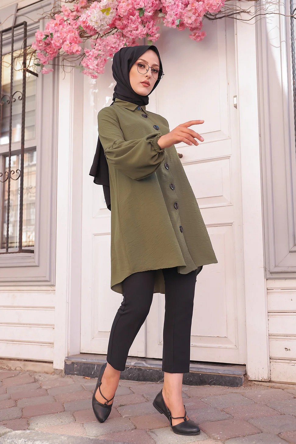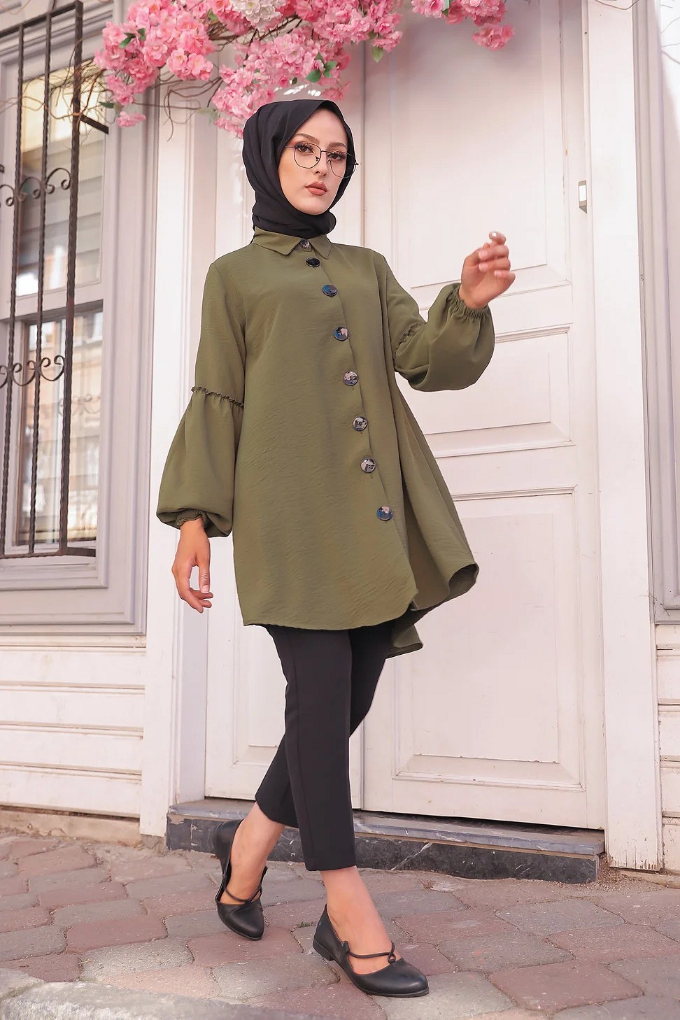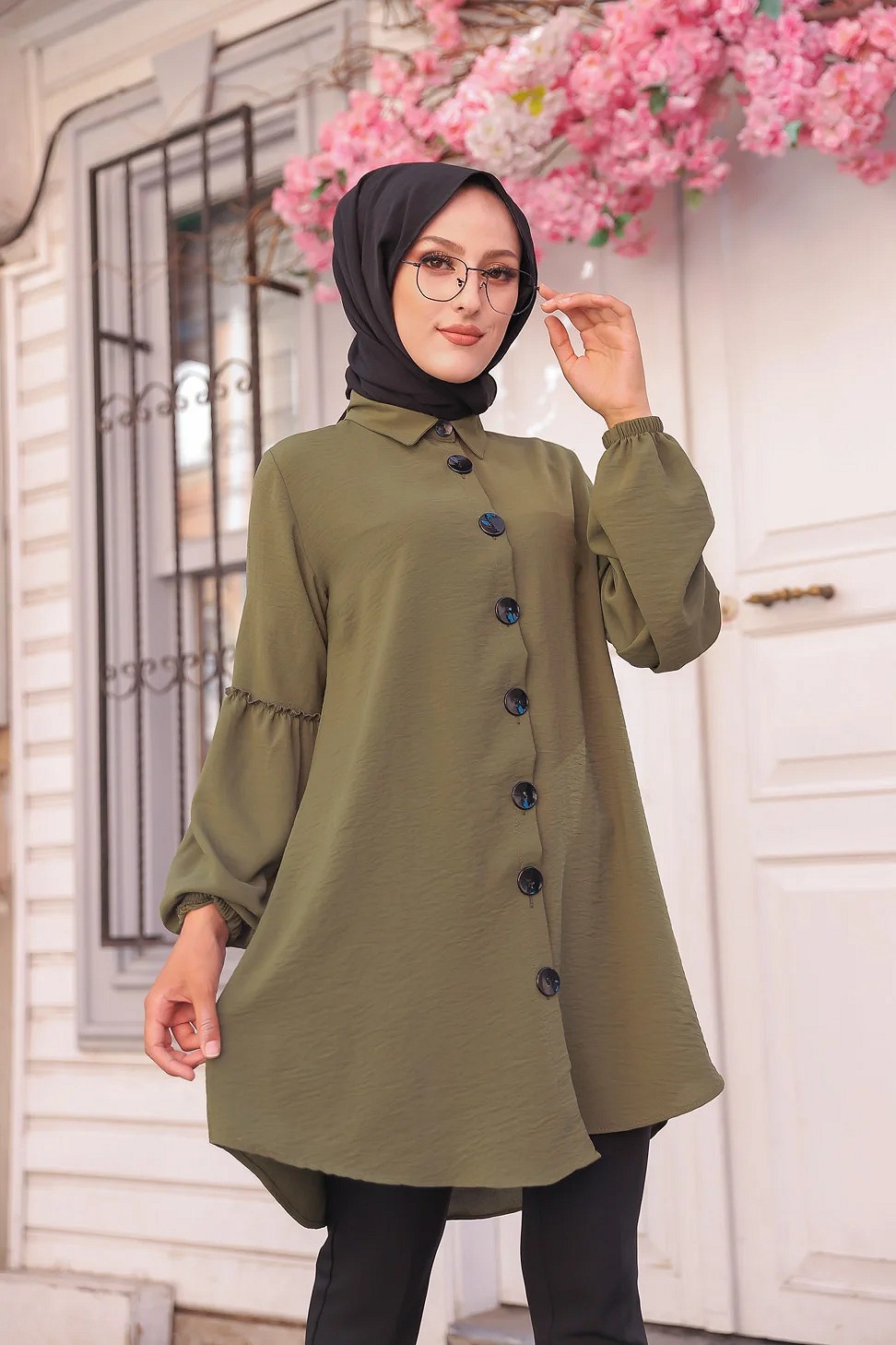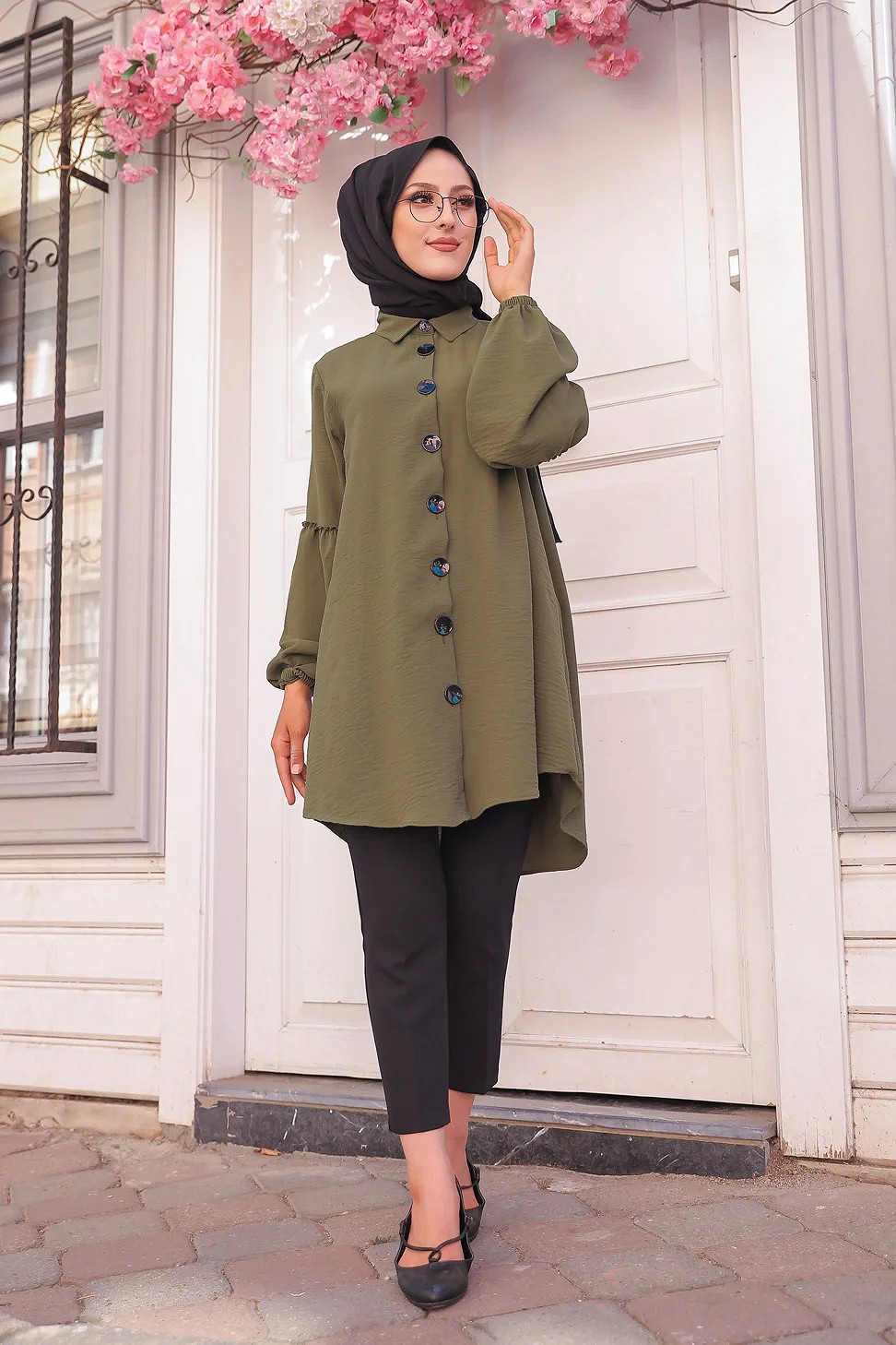 Tunique Chemise ample fermeture boutons pour femme (Vetement Mastour Hijab) - Couleur kaki