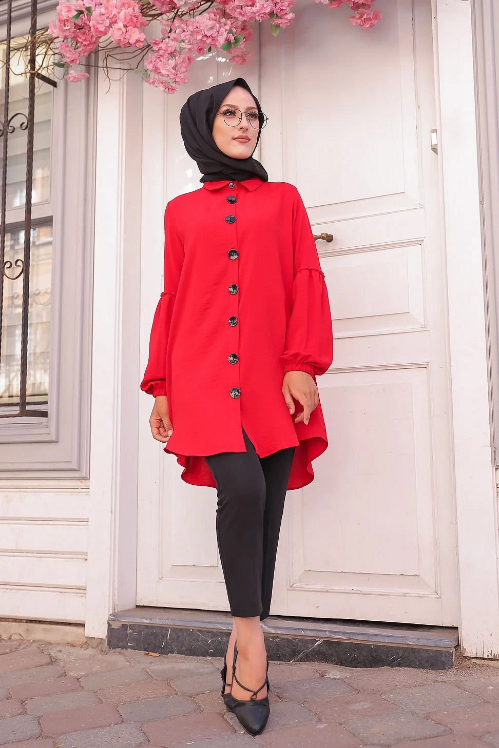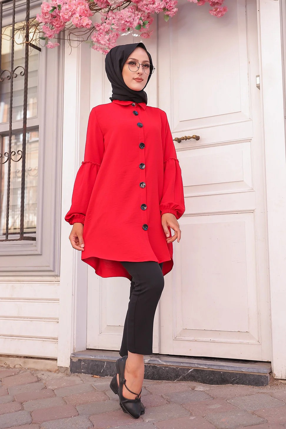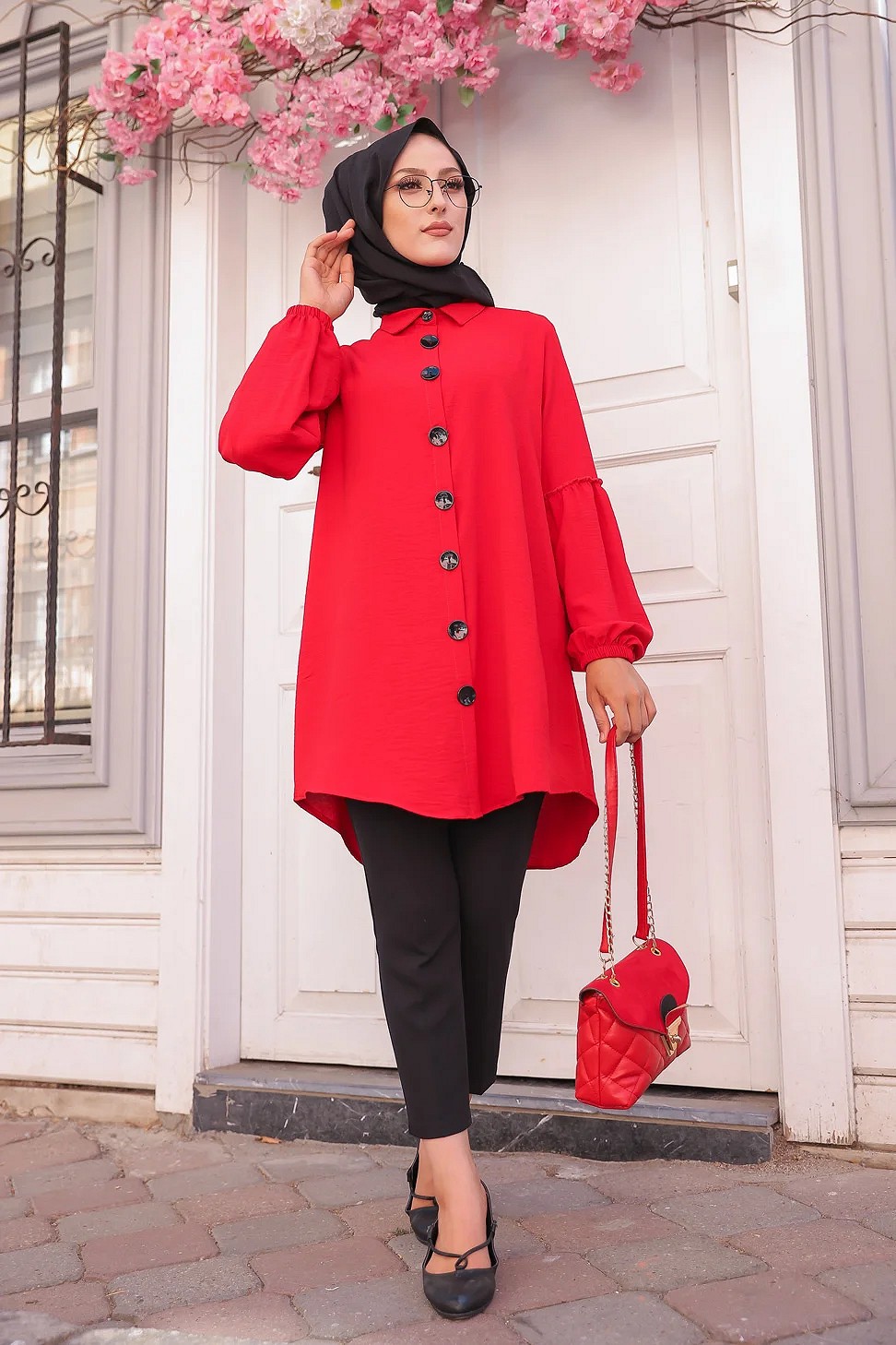 Tunique Chemise ample fermeture boutons pour femme (Vêtements Mode islamique) - Couleur rouge Vetement & Accessoire