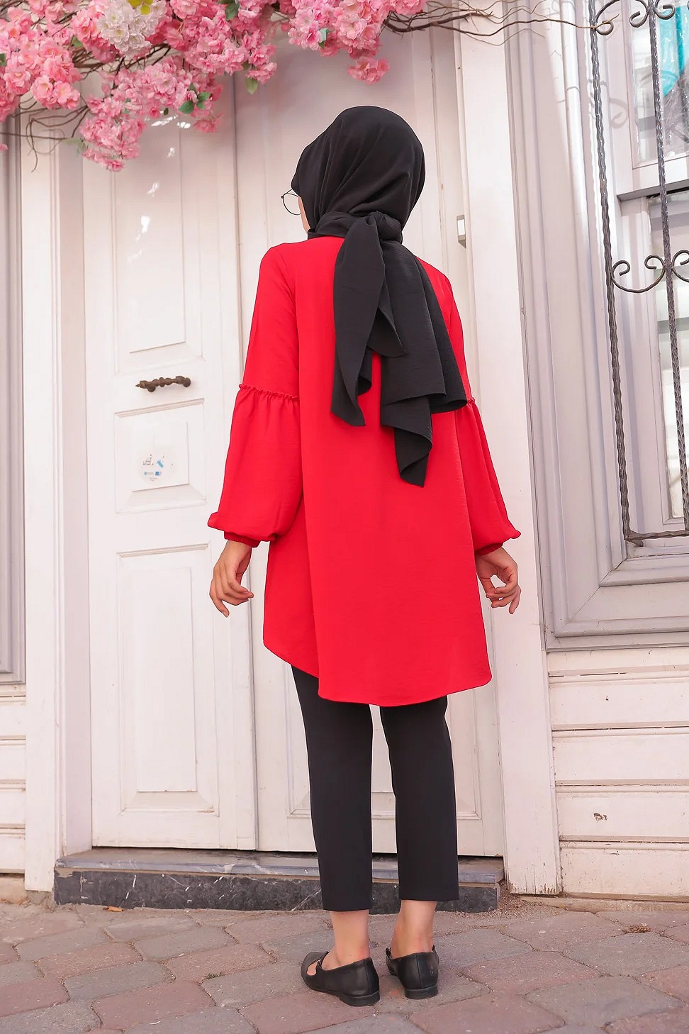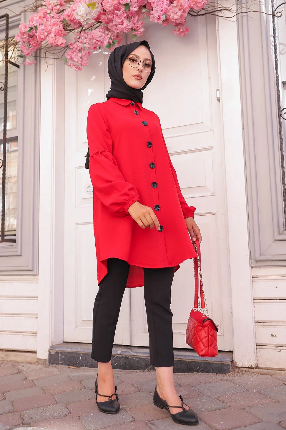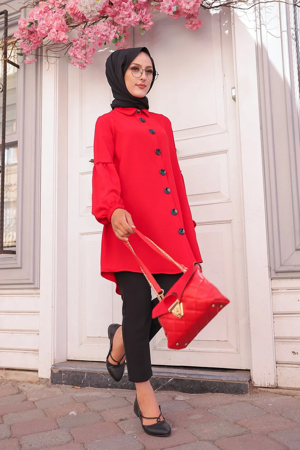 Tunique Chemise ample fermeture boutons pour femme (Vêtements Mode islamique) - Couleur rouge Vetement & Accessoire