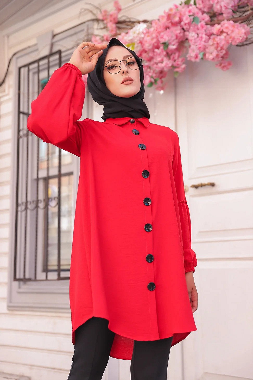 Tunique Chemise ample fermeture boutons pour femme (Vetements Mode islamique) - Couleur rouge