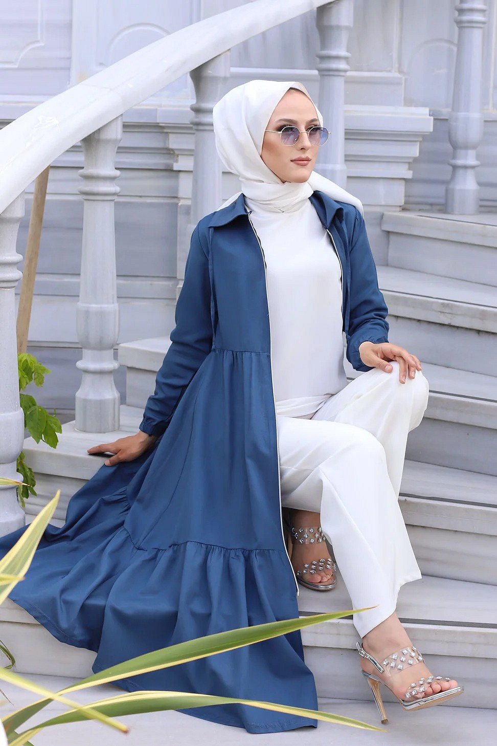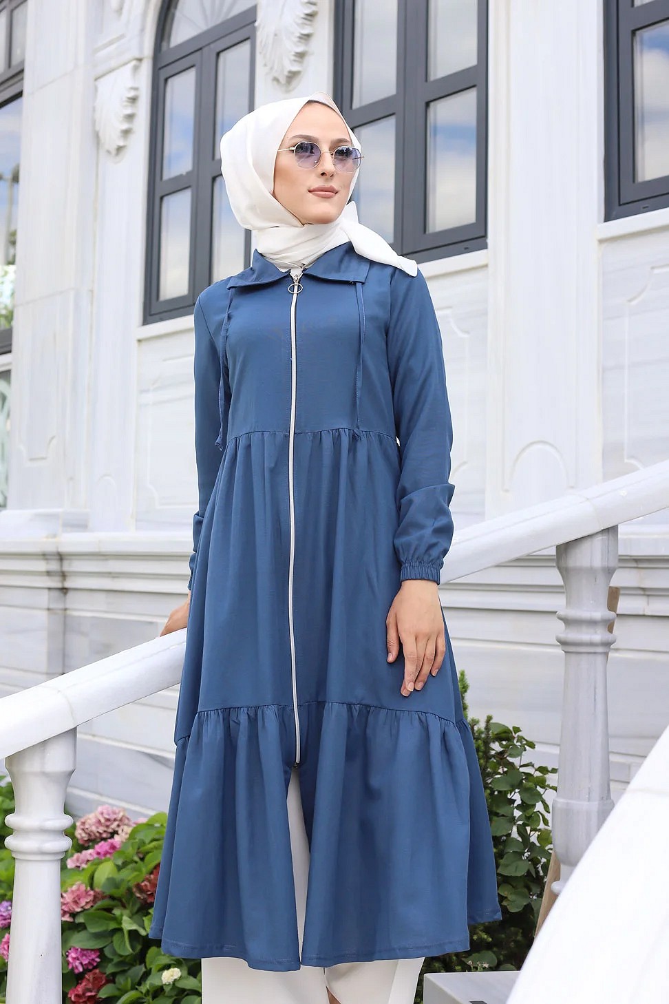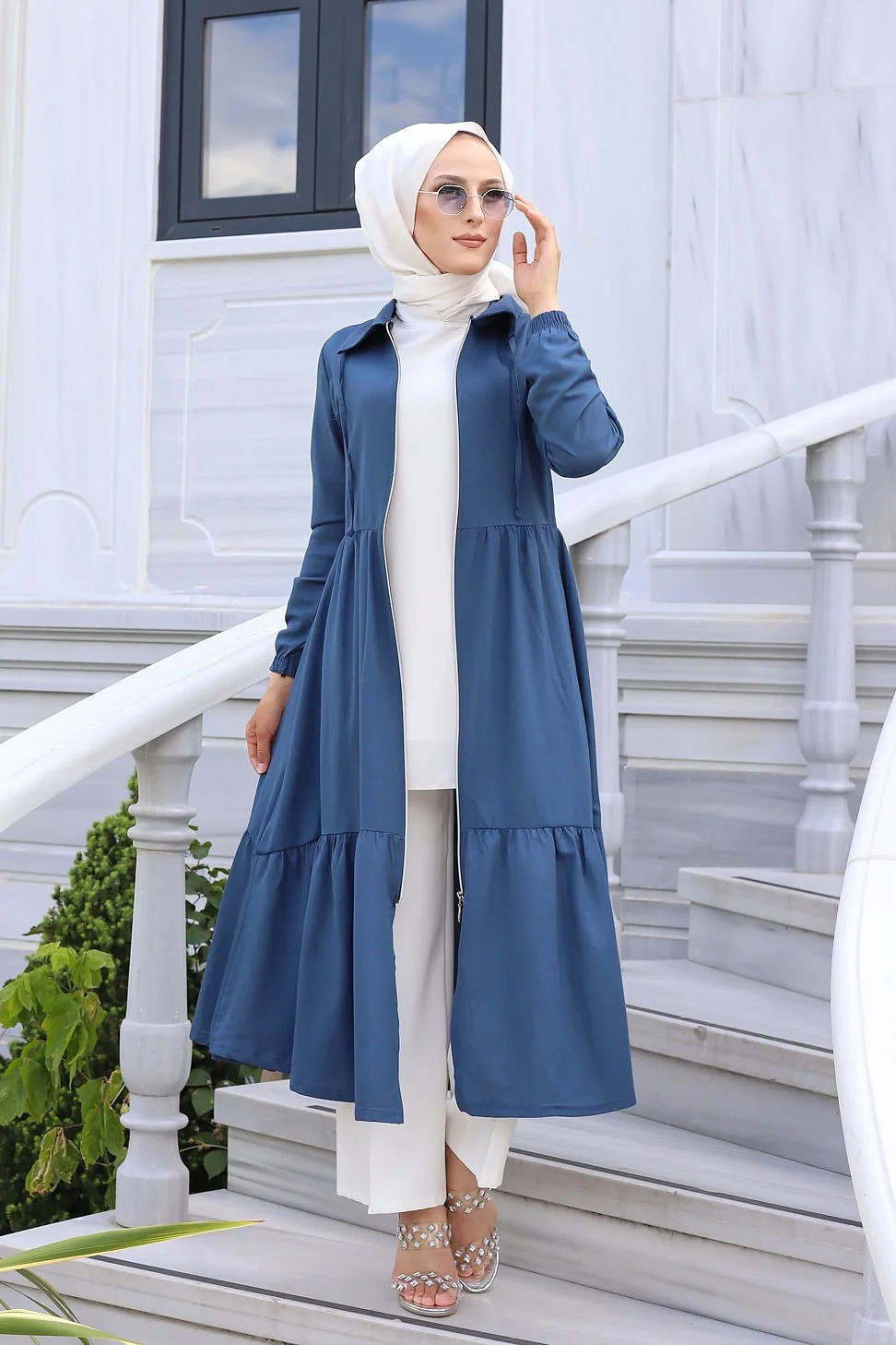 Veste zippée légère mi longue (Tenue ample pour femme voilée) - Couleur bleue pétrole Vetement & Accessoire