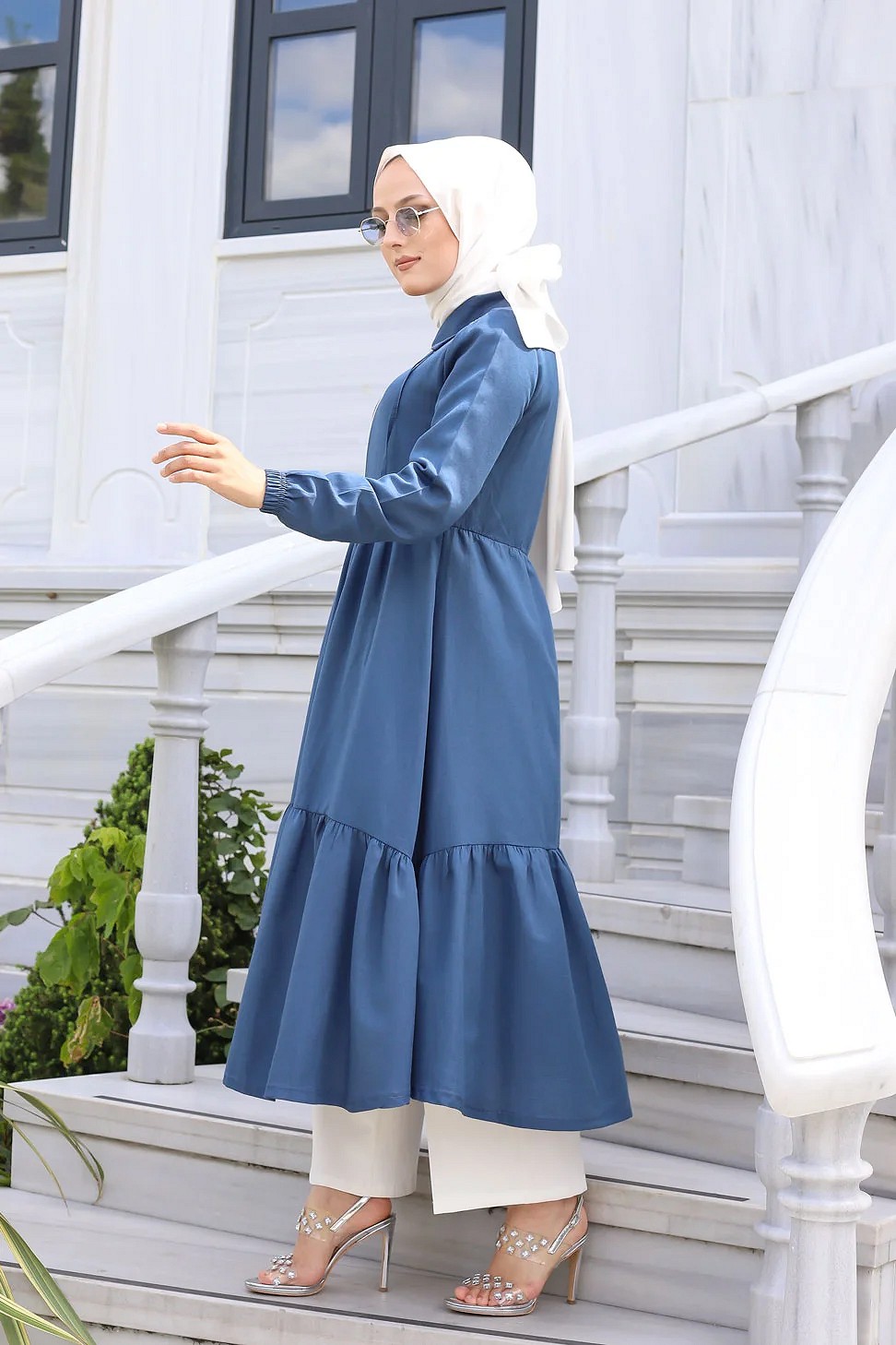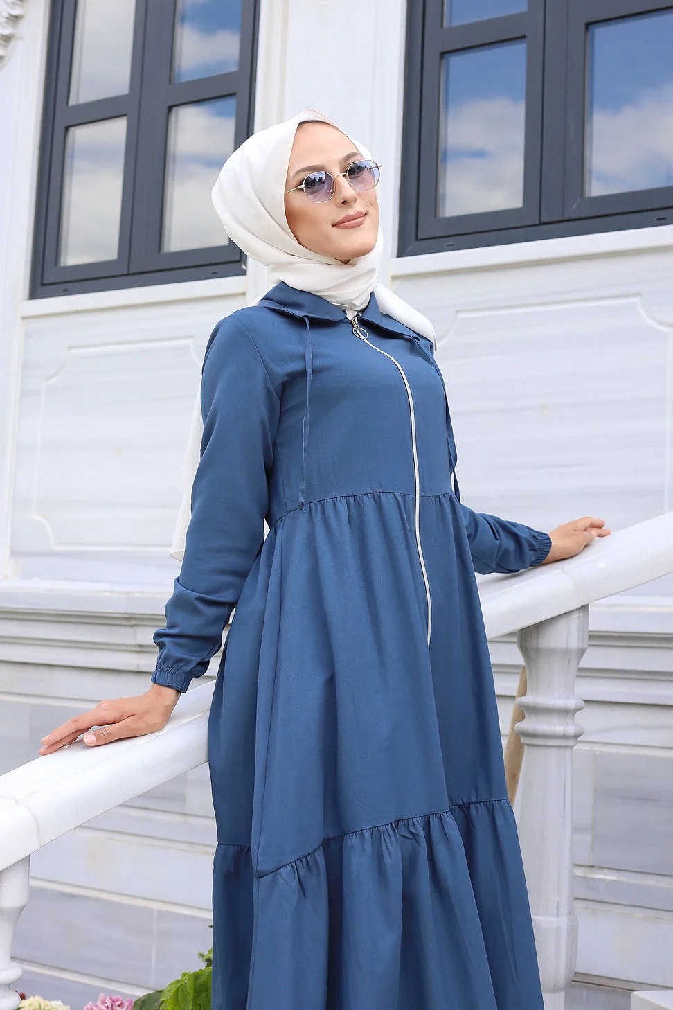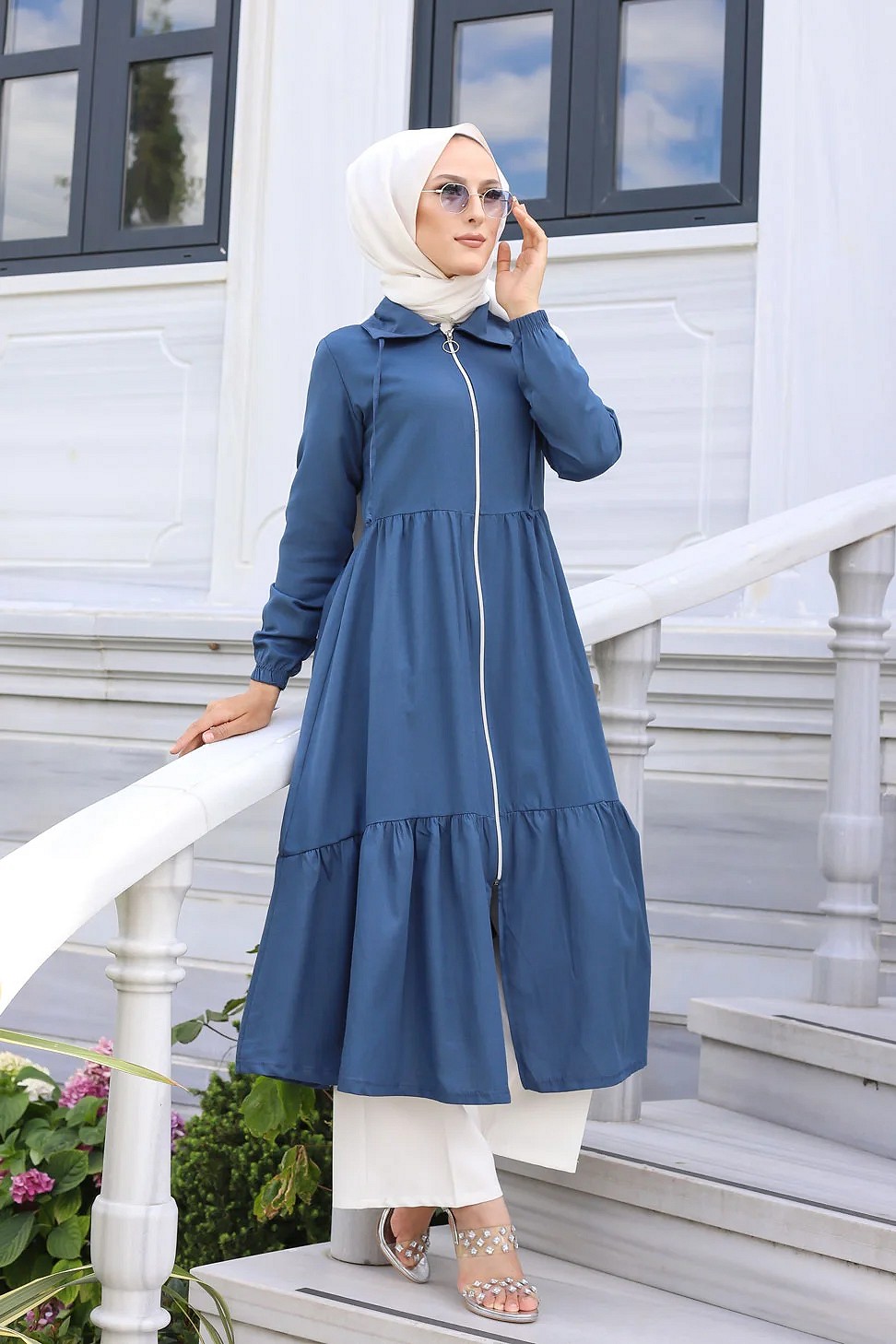 Veste zippée légère mi longue (Tenue ample pour femme voilée) - Couleur bleue pétrole Vetement & Accessoire