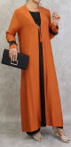 Robe longue casual boutonnée avec sa ceinture (Vetement pour femme musulmane) - Couleur brique - REF. 33928 (35.00 €)