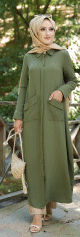 Robe longue fluide entièrement boutonnée devant (Vetement hijab turque casual) - Couleur Kaki - REF. 33950 (35.00 €)