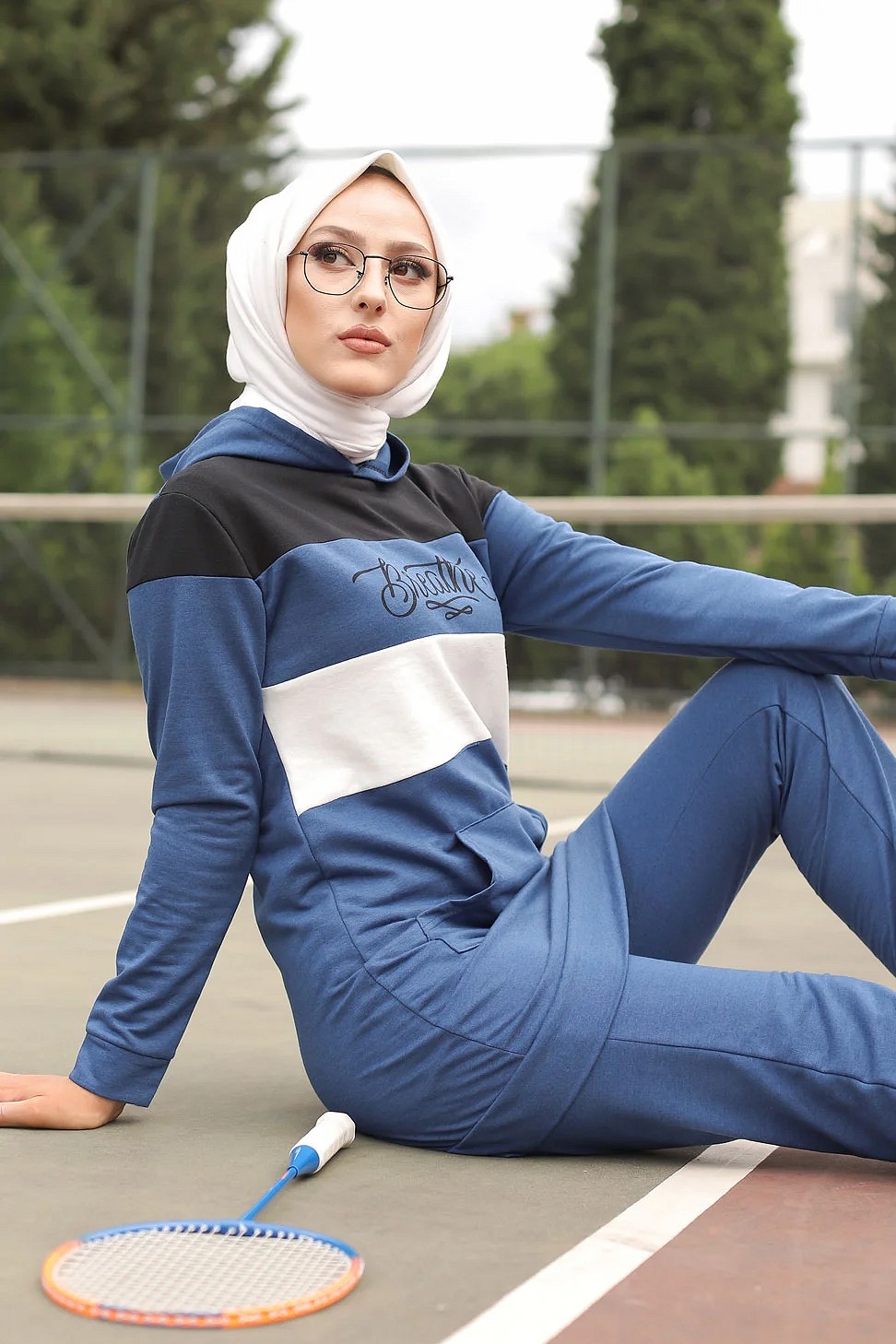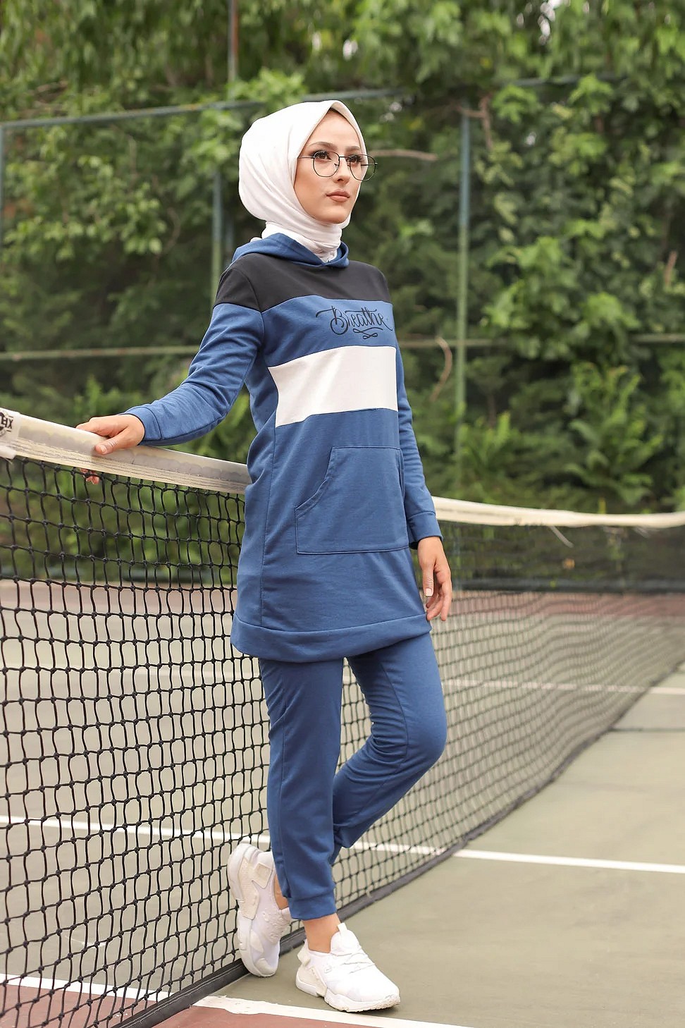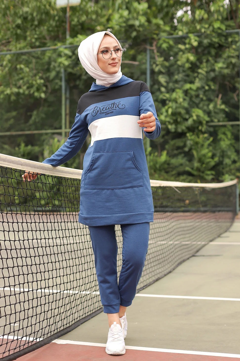 Ensemble sport deux pièces (haut et bas assortis) avec grandes poches et capuche, parfait pour le quotidien ou vos activités sportives. On aime sa coupe tendance pensée pour les femmes actives. Conçu dans une matière coton très qualitative. Imprimé avec le verbe anglais "Breathe" qui signifie "Respirer".