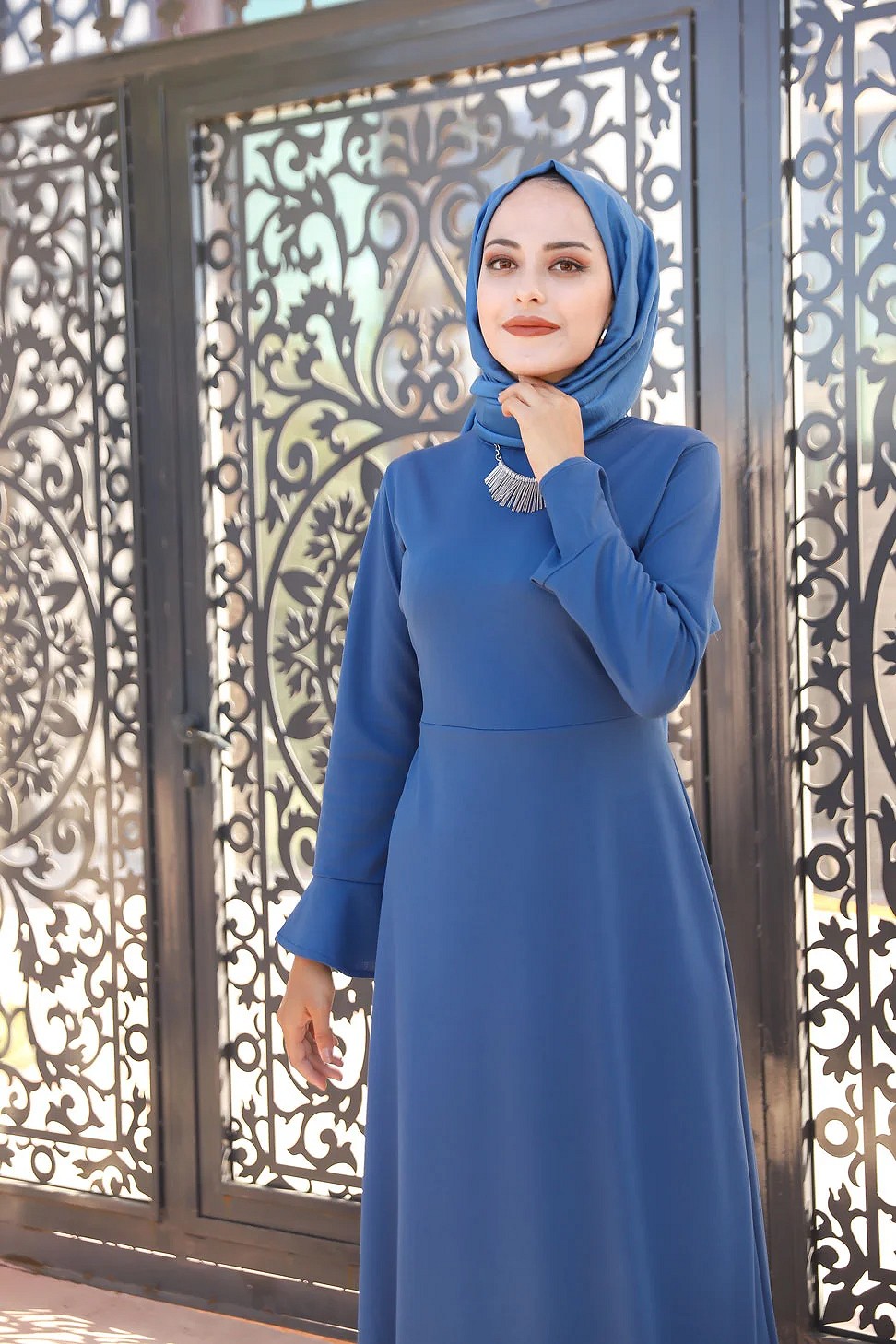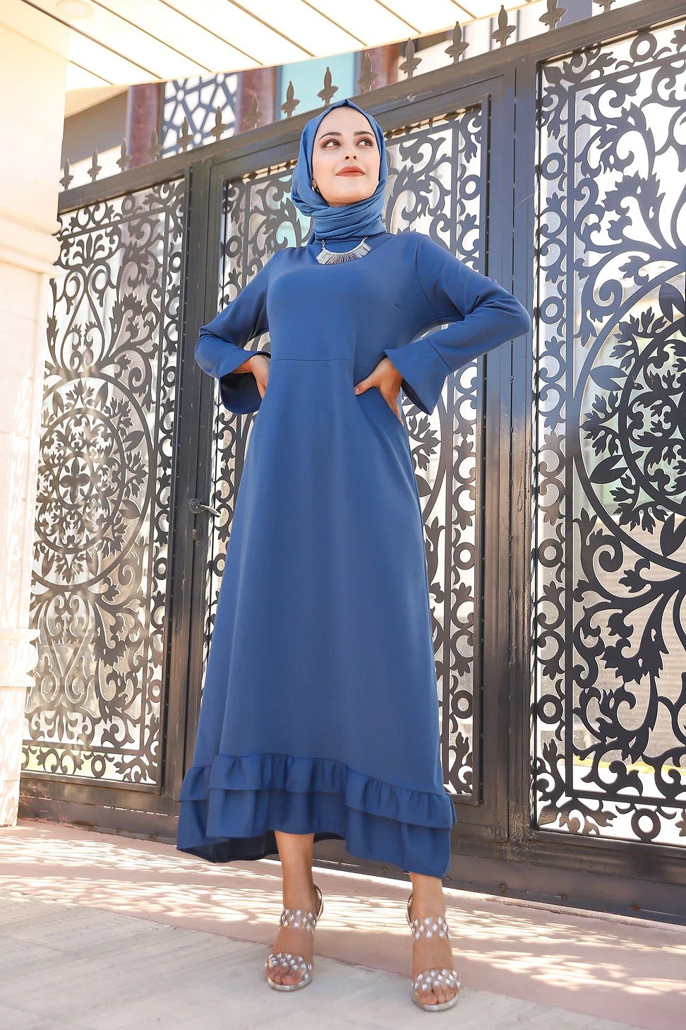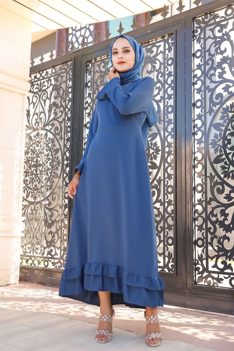 Robe tres longue a volants (Abayas et vetements pour femmes voilees) - Couleur bleu indigo